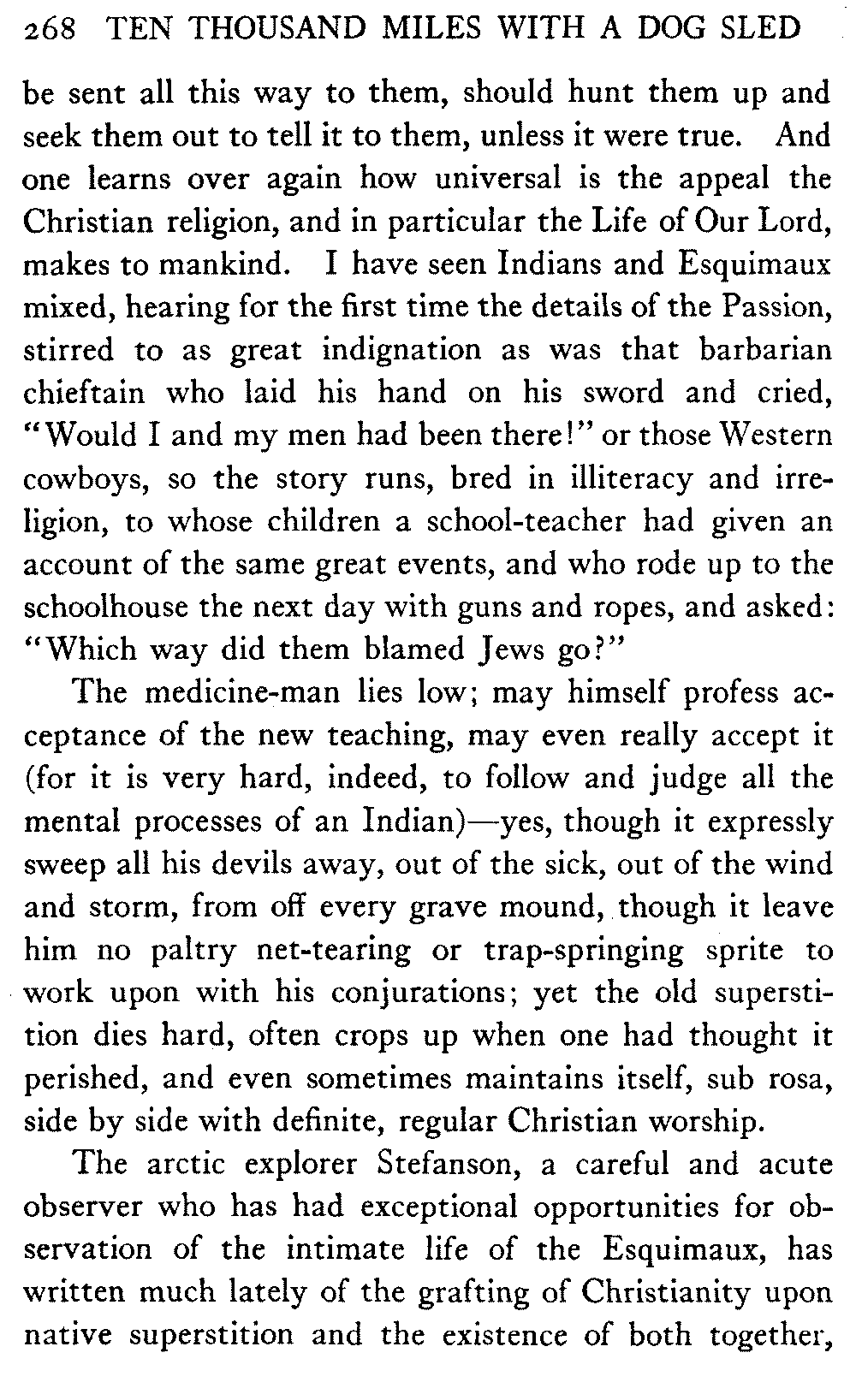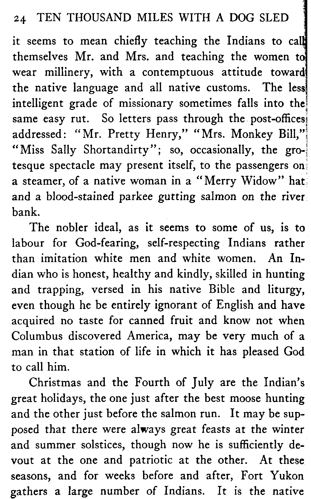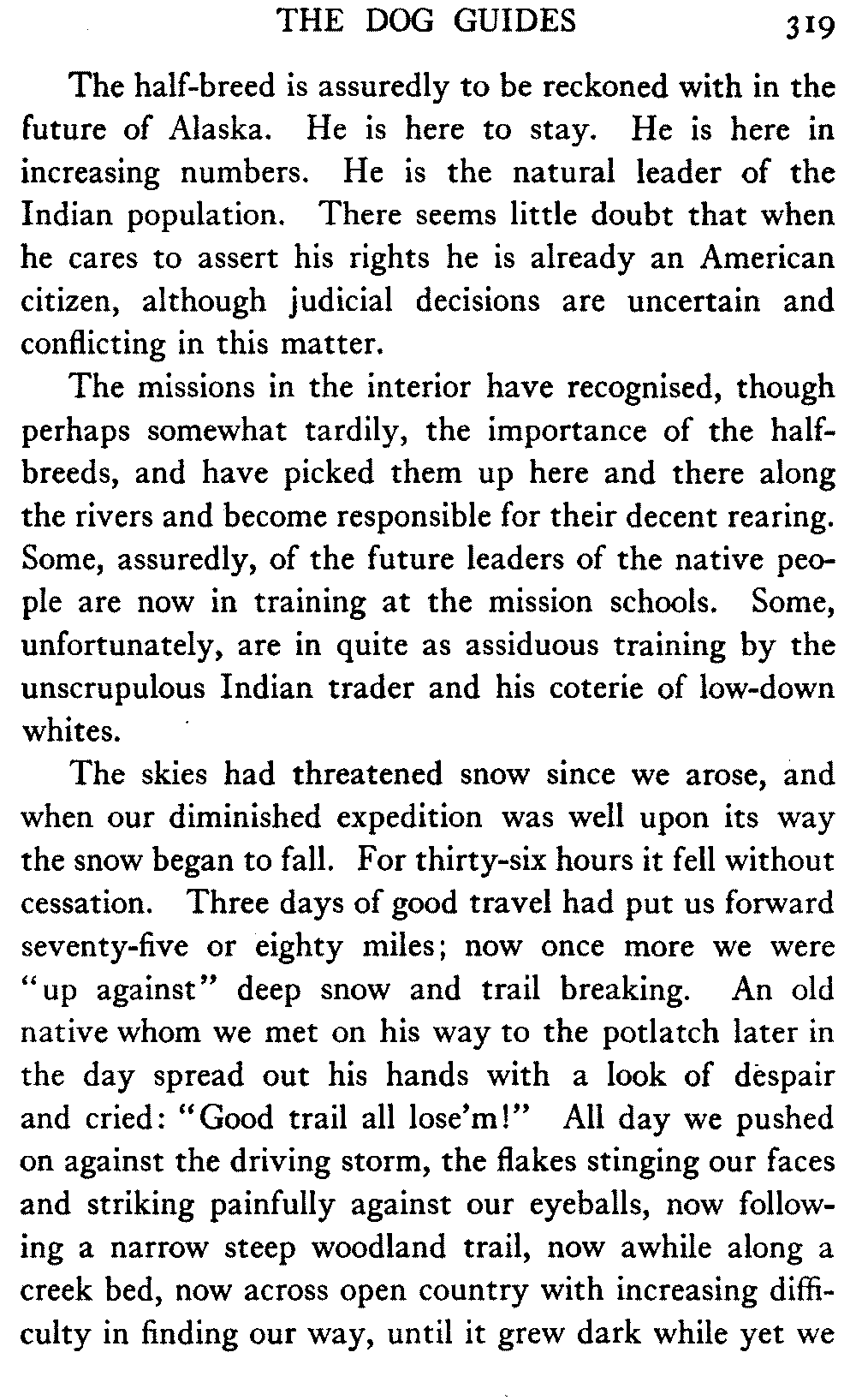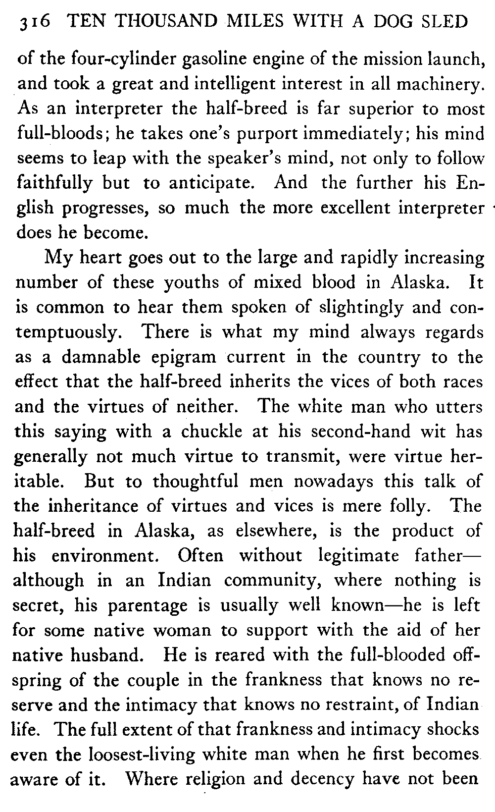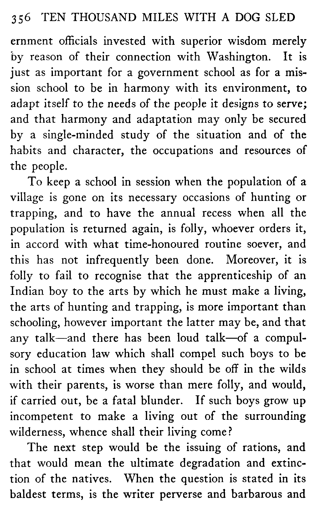 So this book goes forth with a plea in the front of it, which will find incidental support and expression throughout it, for the natives of interior Alaska, that they be not wantonly destroyed off the face of the earth.