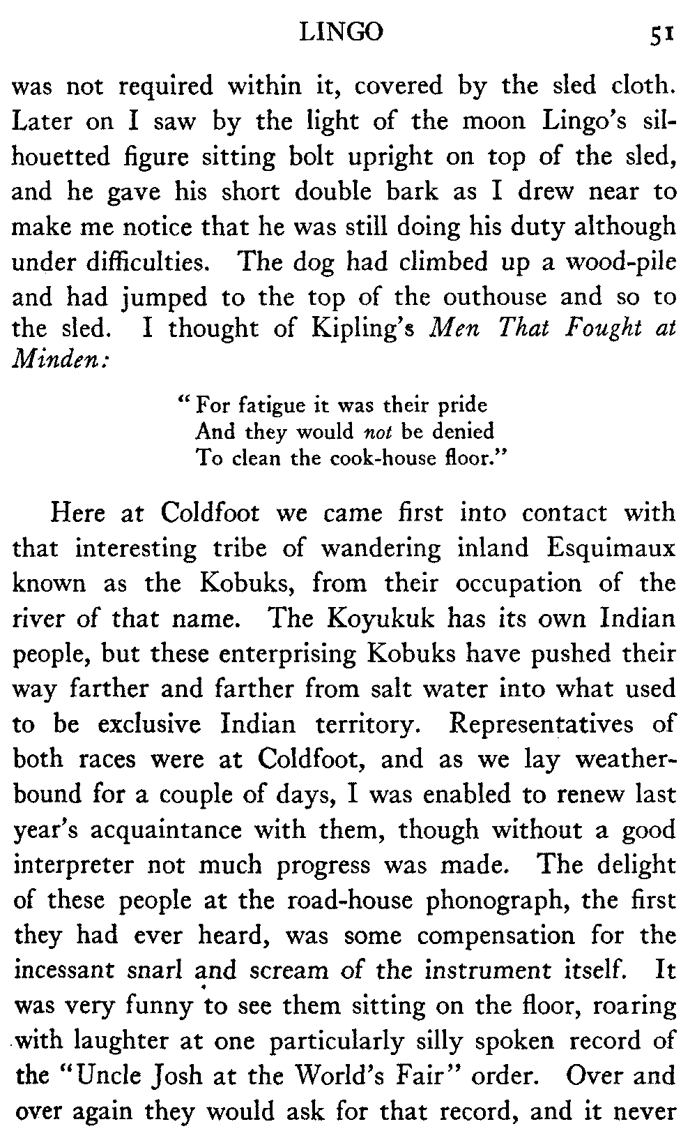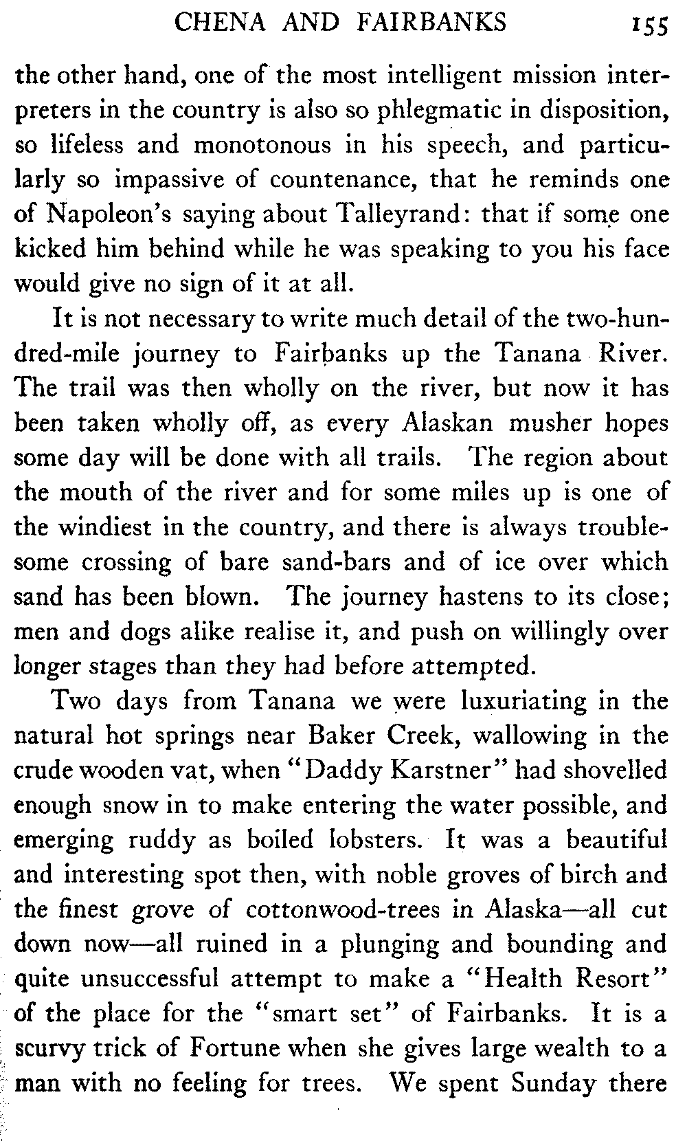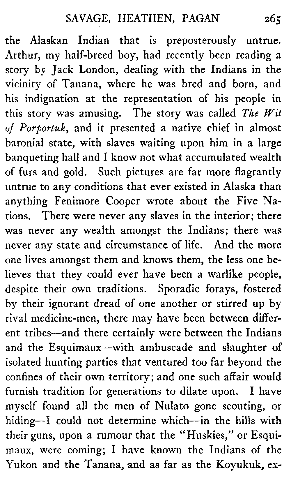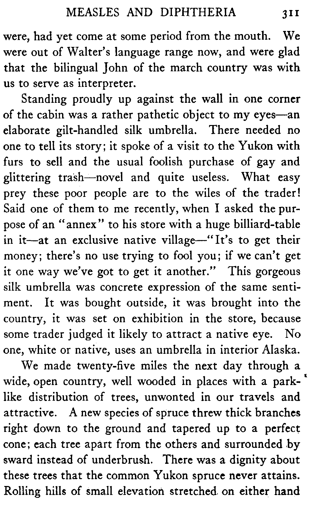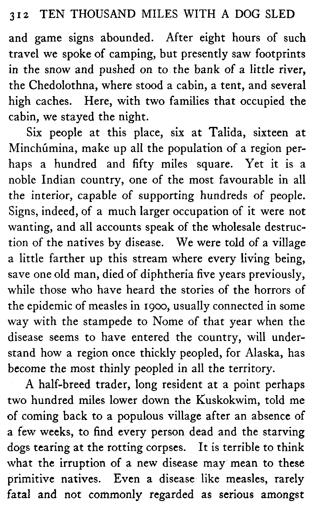 So this book goes forth with a plea in the front of it, which will find incidental support and expression throughout it, for the natives of interior Alaska, that they be not wantonly destroyed off the face of the earth.