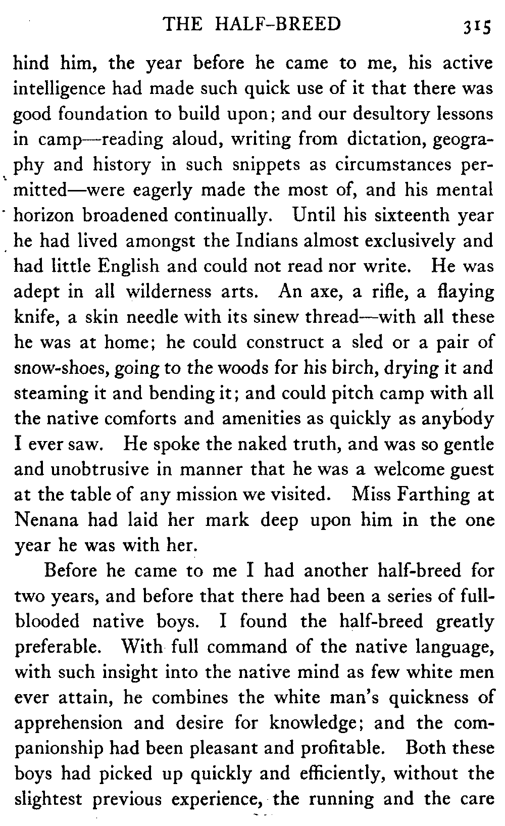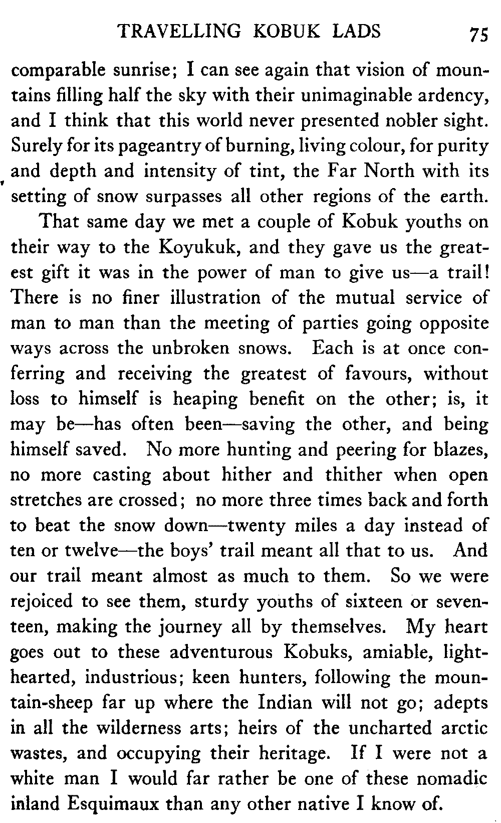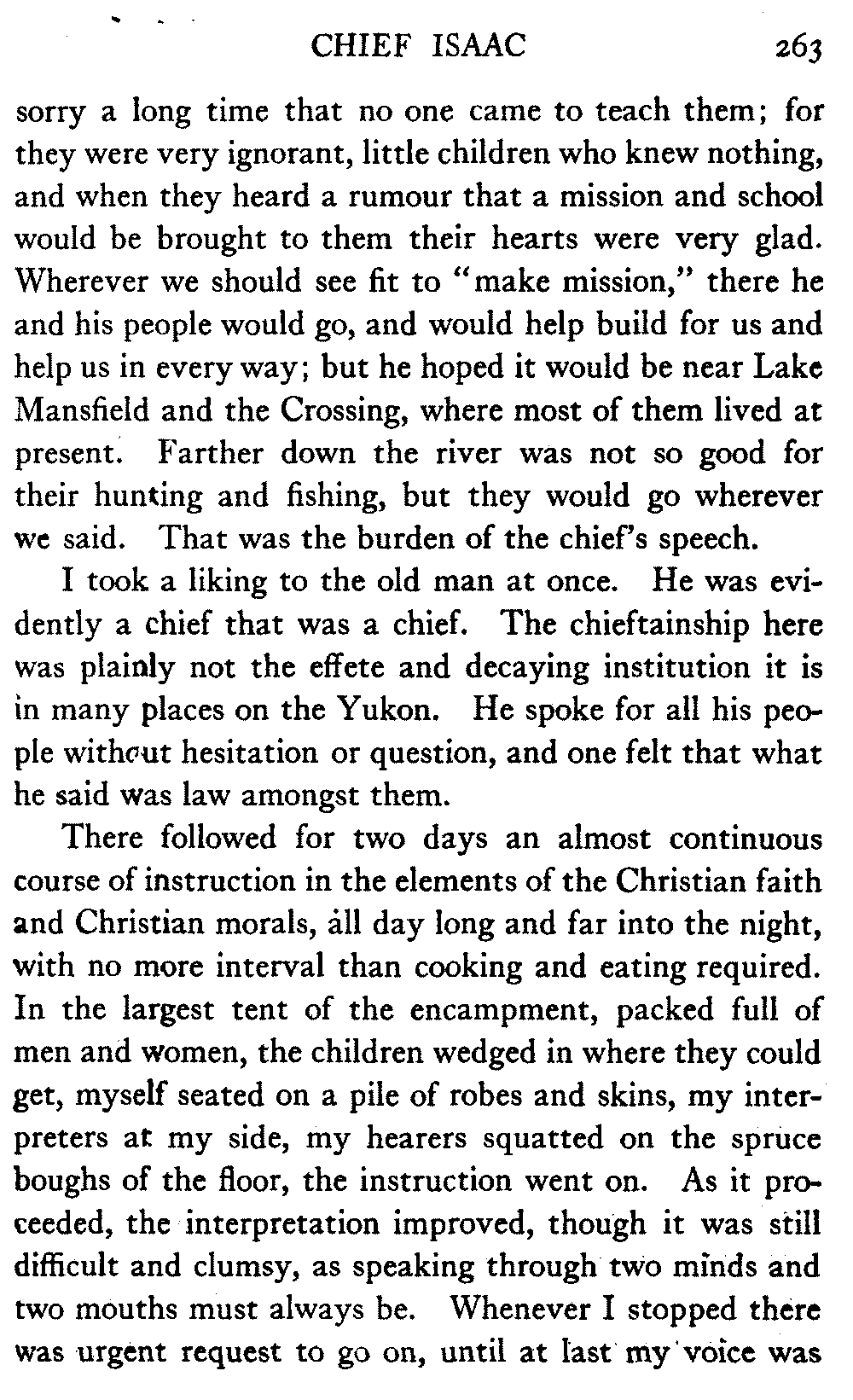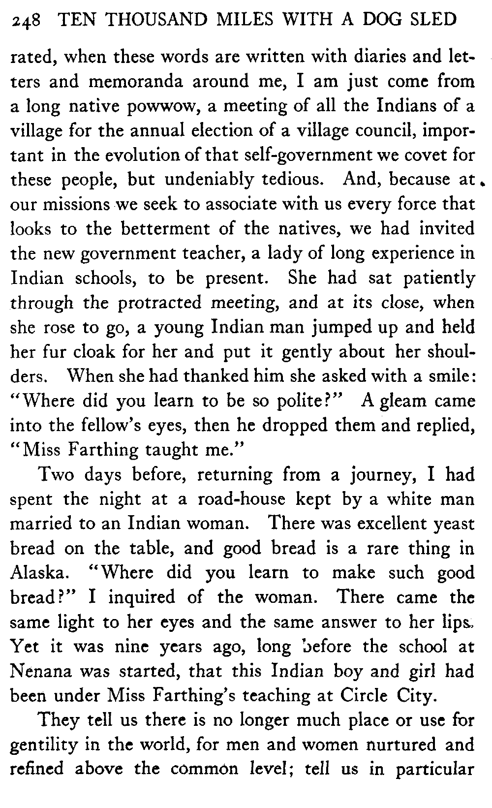 So this book goes forth with a plea in the front of it, which will find incidental support and expression throughout it, for the natives of interior Alaska, that they be not wantonly destroyed off the face of the earth.
