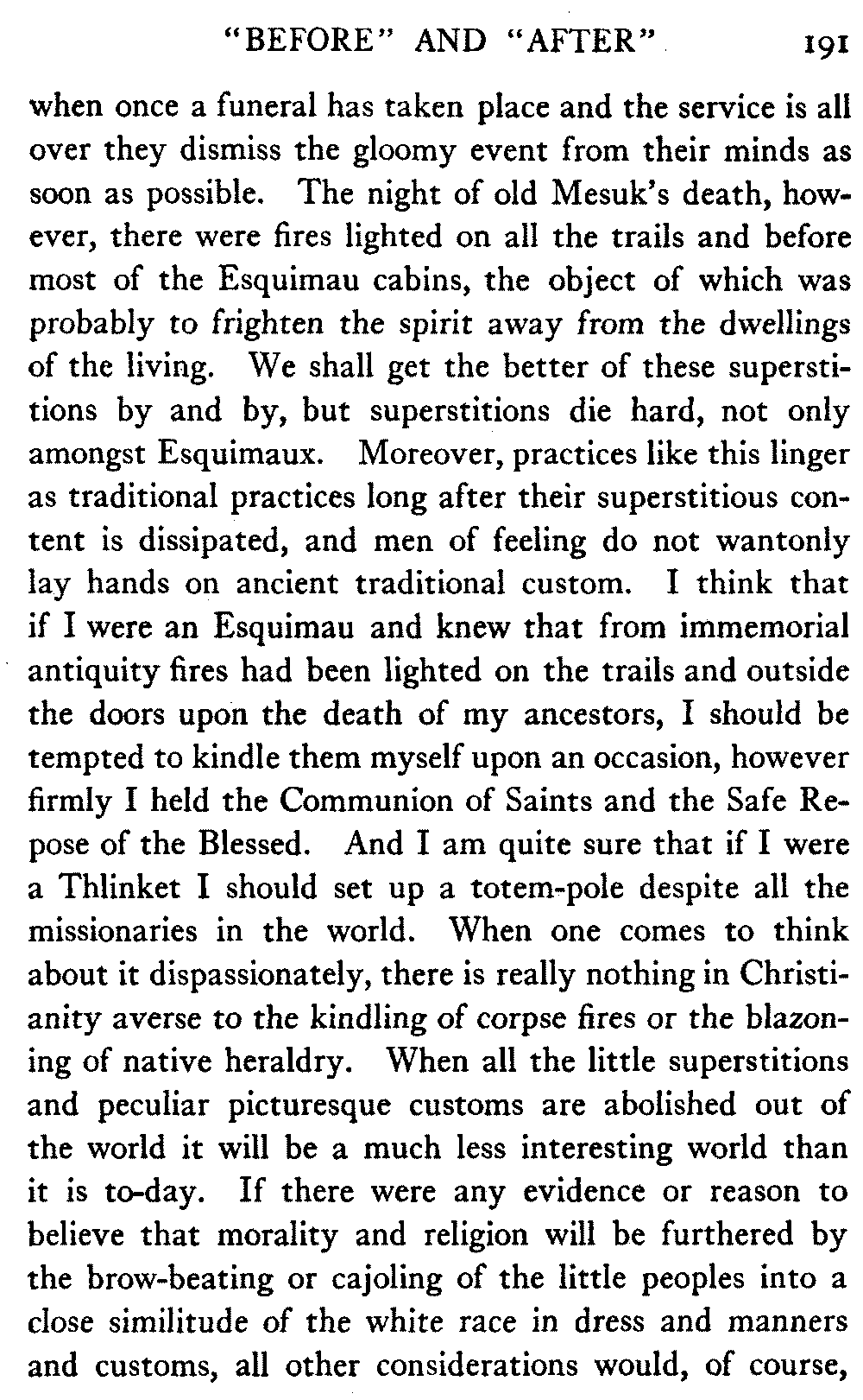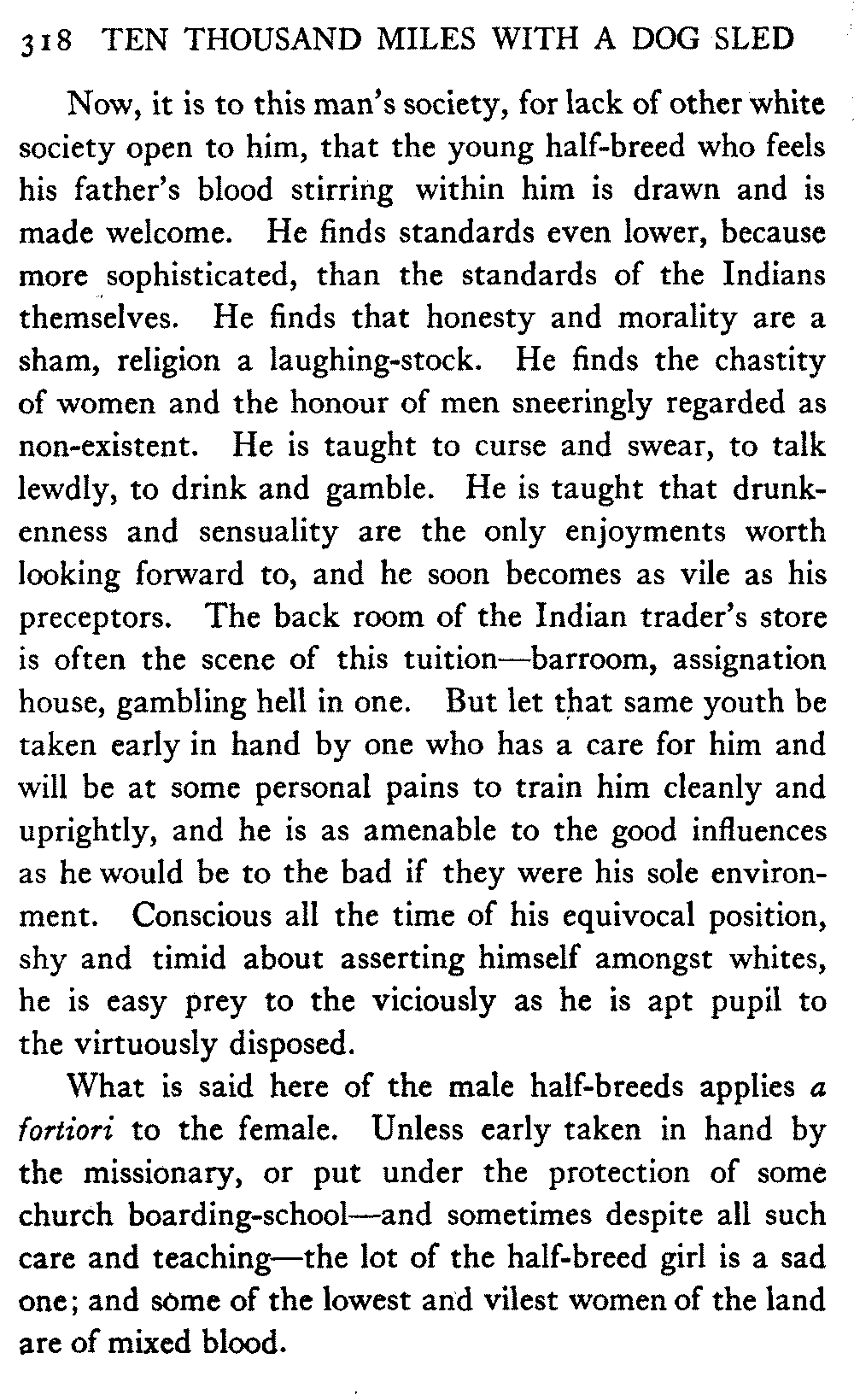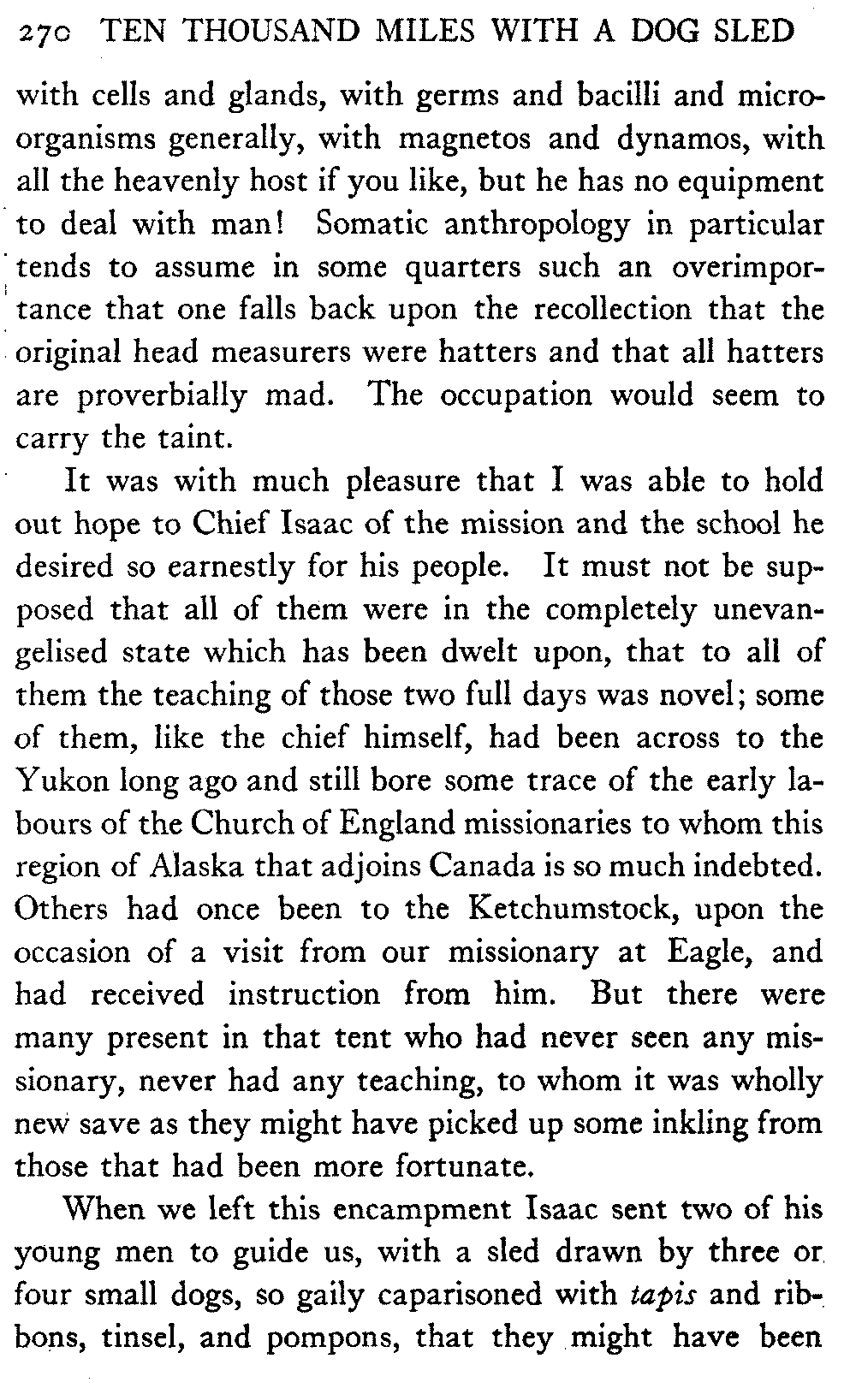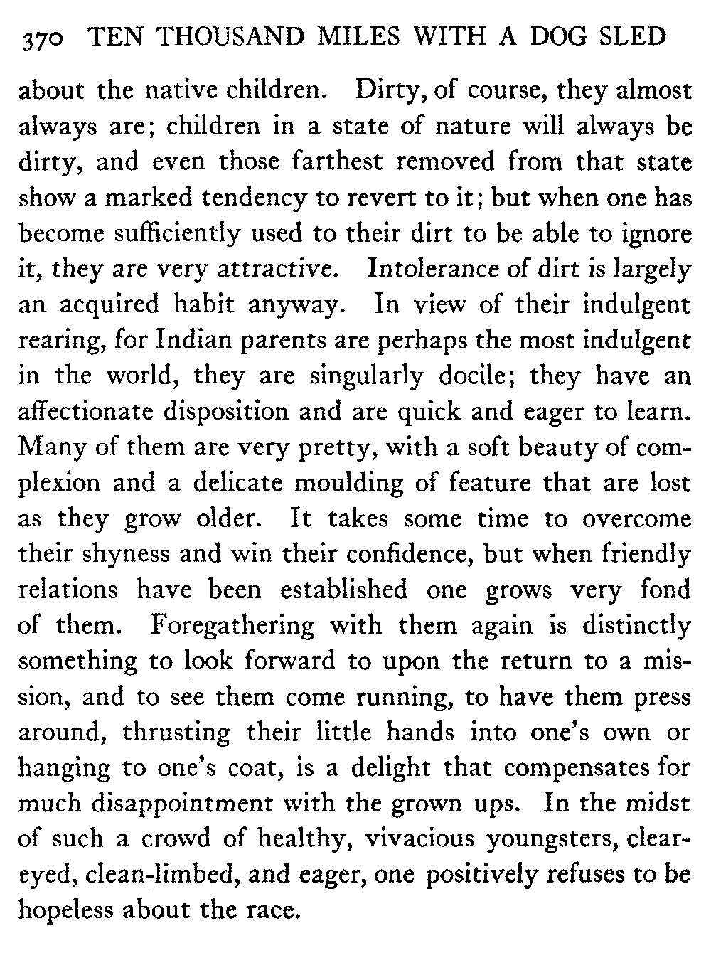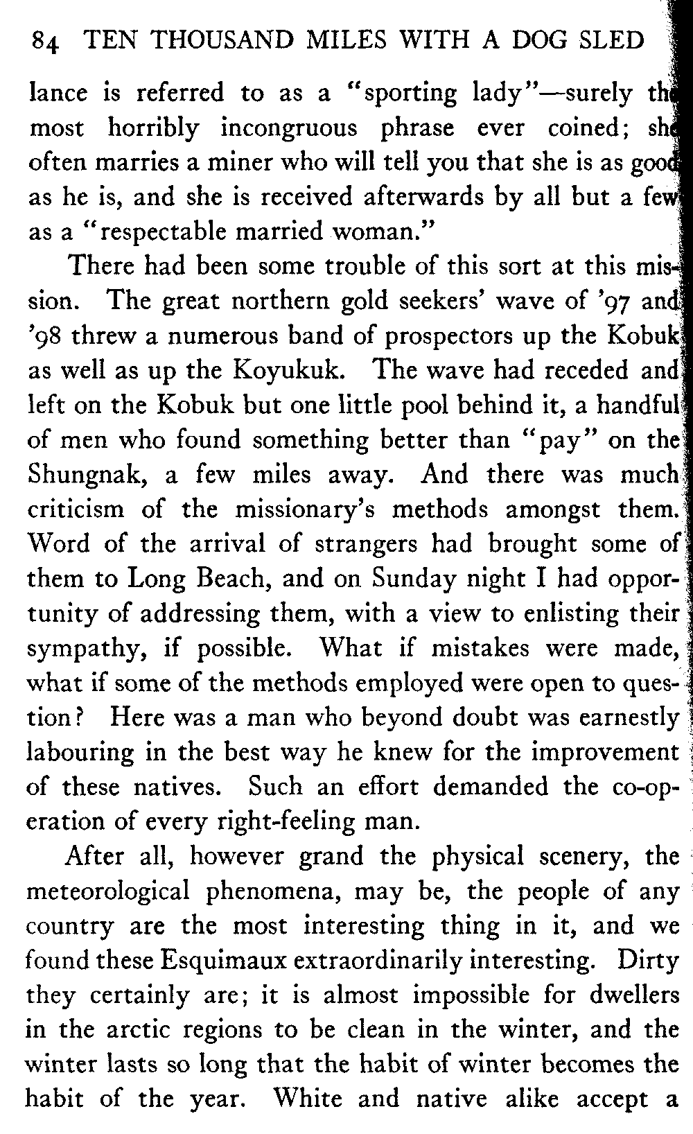 So this book goes forth with a plea in the front of it, which will find incidental support and expression throughout it, for the natives of interior Alaska, that they be not wantonly destroyed off the face of the earth.