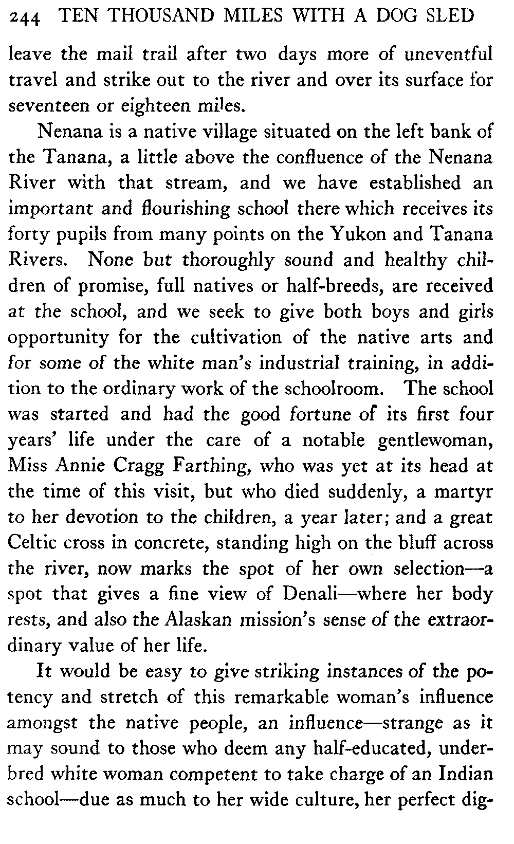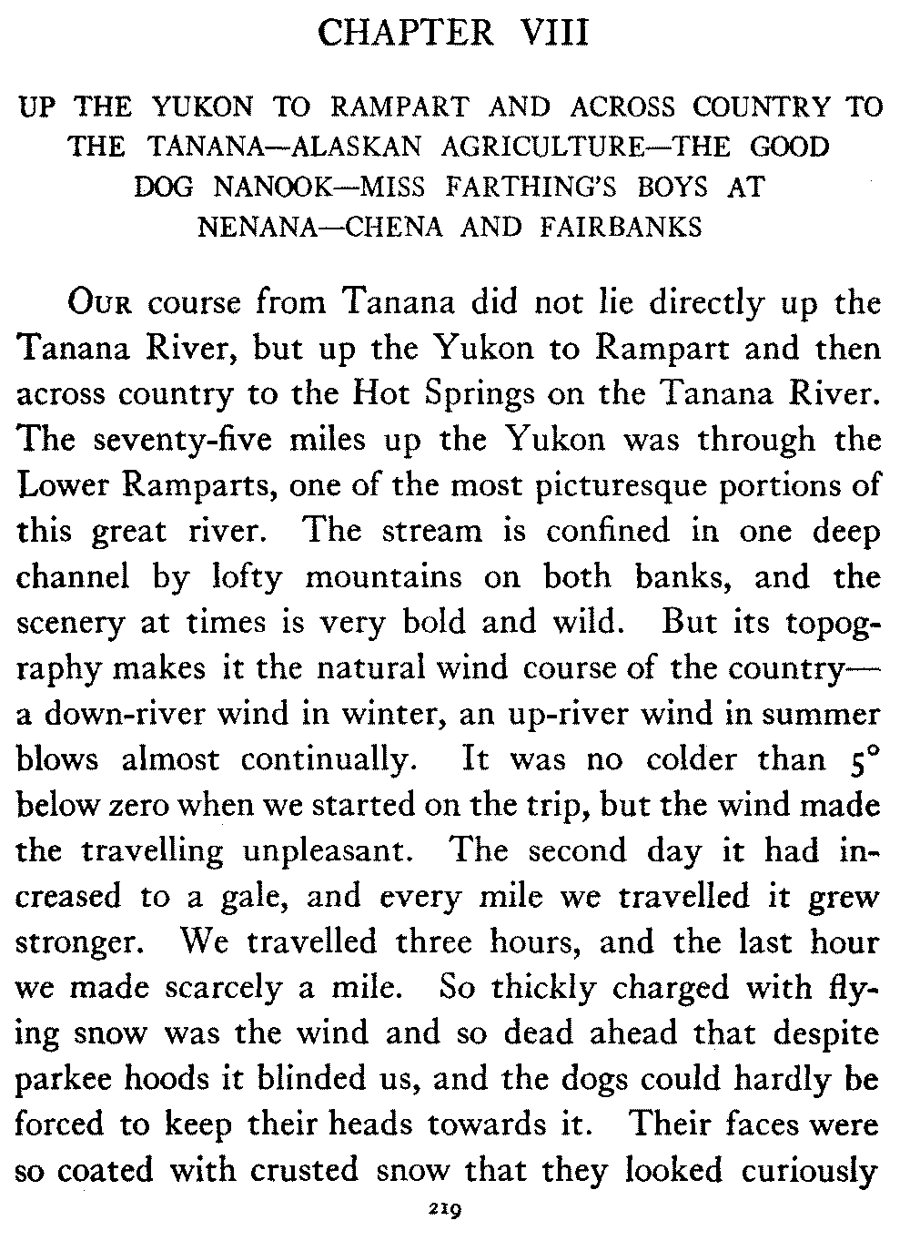 | VIII. | Up the Yukon to Rampart and Across Country to the Tanana—Alaskan Agriculture—The Good Dog Nanook—Miss Farthing's Boys at Nenana—Chena and Fairbanks | 219 |