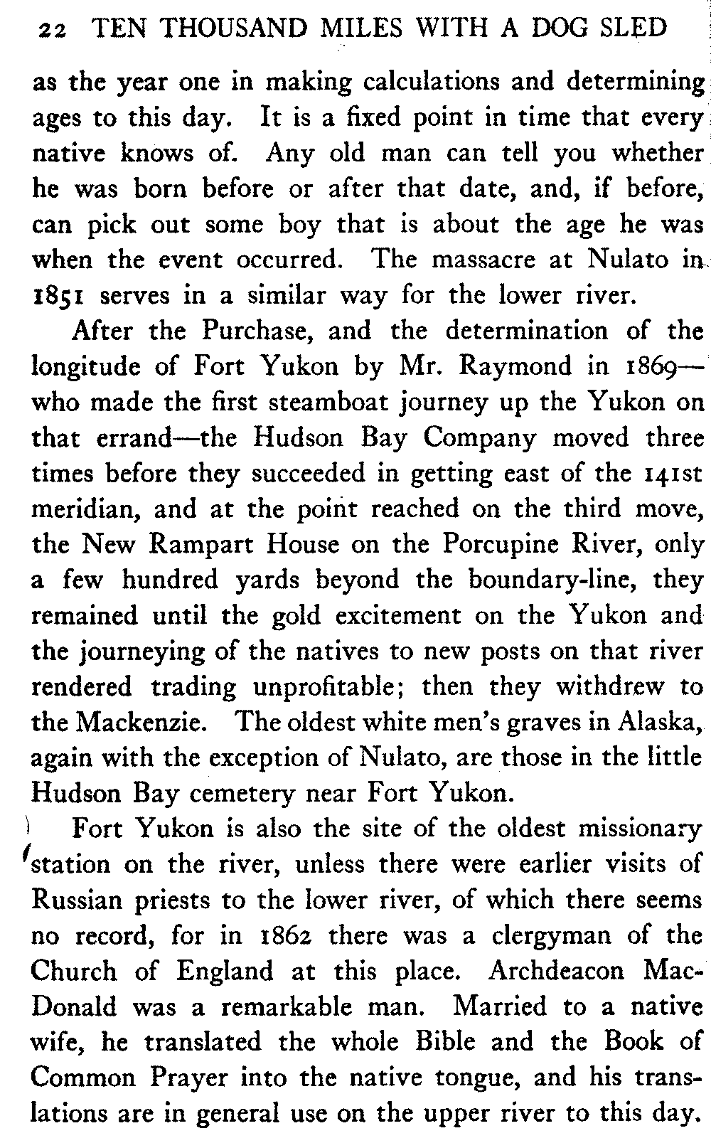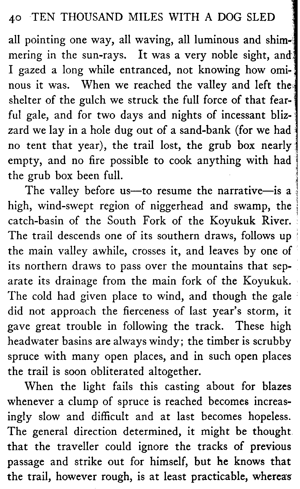 So much for the book's scope; a word of its limitations. It is confined to the interior of Alaska; confined in the main to the great valley of the Yukon and its tributaries; being a record of sled journeys, it is confined to the winter.
