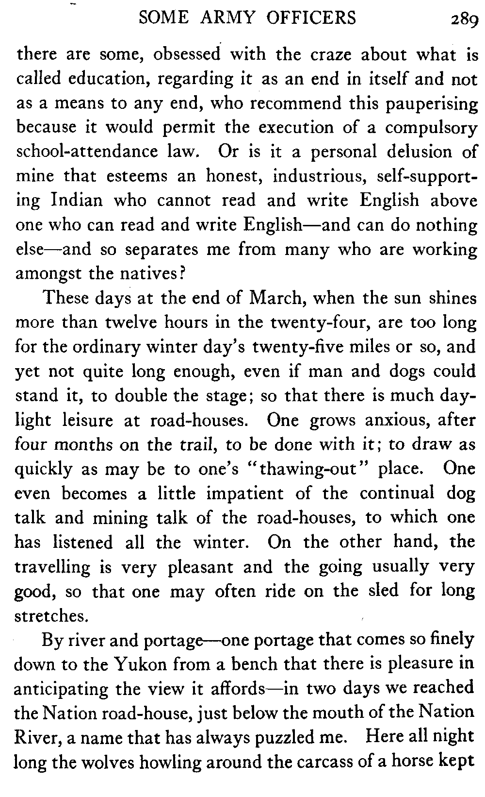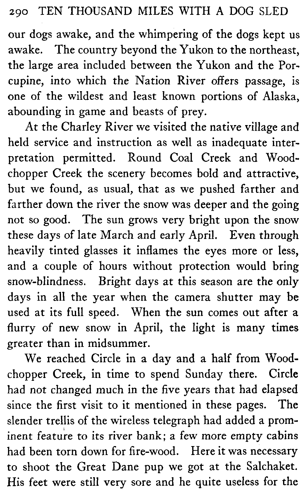 | "A portage that comes so finely down to the Yukon that there is pleasure in anticipating the view it affords" | 290 | |