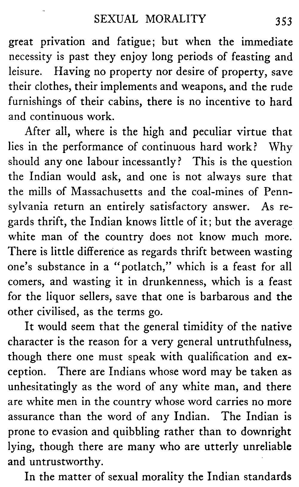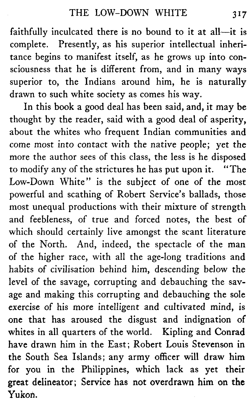 Some measure of protection, one thinks, must also be afforded against a predatory class of Indian traders, the back rooms of whose stores are often barrooms, gambling-dens, and houses of assignation, and headquarters and harbourage for the white degenerates—even if the government go the length of setting up co-operative Indian stores in the interior, as has been done in some places on the coast. This last is a matter in[xiii] which the missions are helpless, for there is no wise combination of religion and trade.