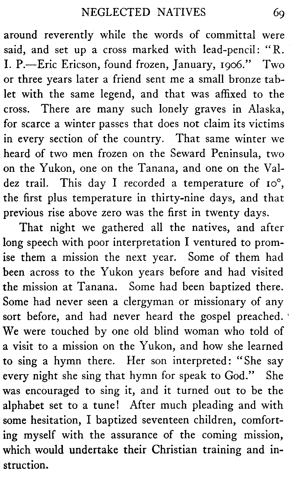 These journeys were connected primarily with the administration of the extensive work of the Episcopal Church in the interior of Alaska, under the bishop of the diocese; but that feature of them has been fully set forth from time to time in the church publications, and finds only incidental reference here.