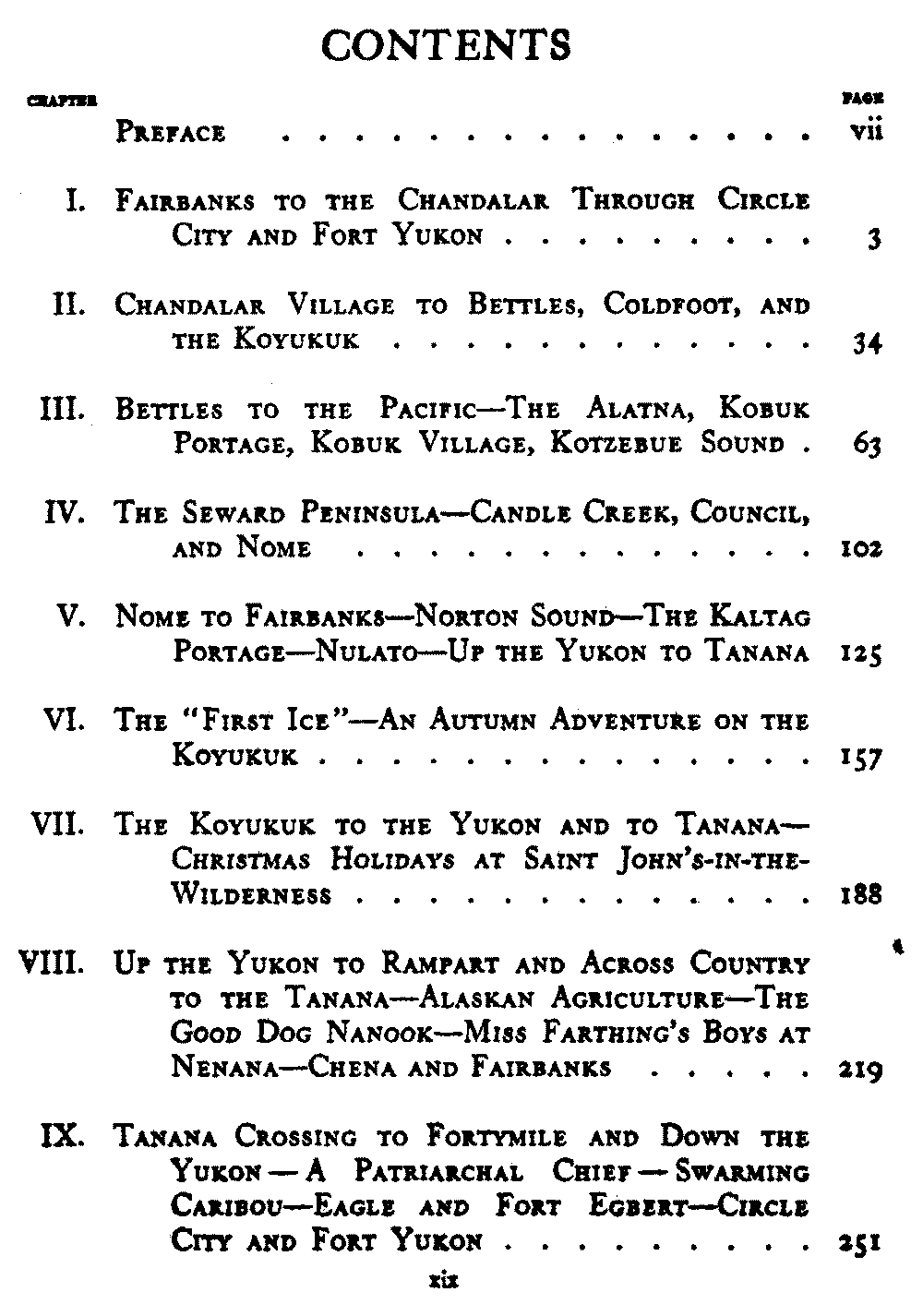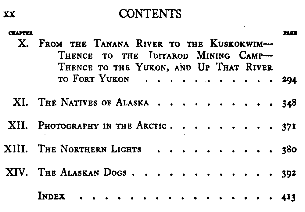 | IX. | Tanana Crossing to Fortymile and Down the Yukon—A Patriarchal Chief—Swarming Caribou—Eagle and Fort Egbert—Circle City and Fort Yukon | 251[xx] |