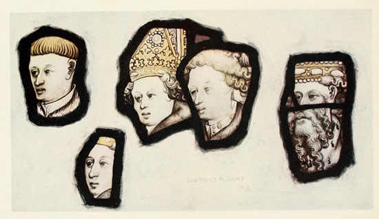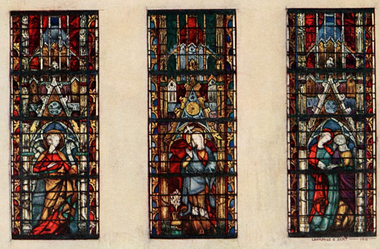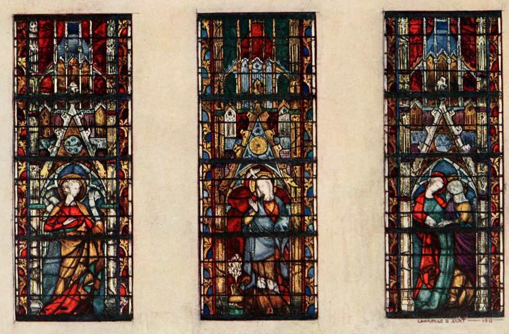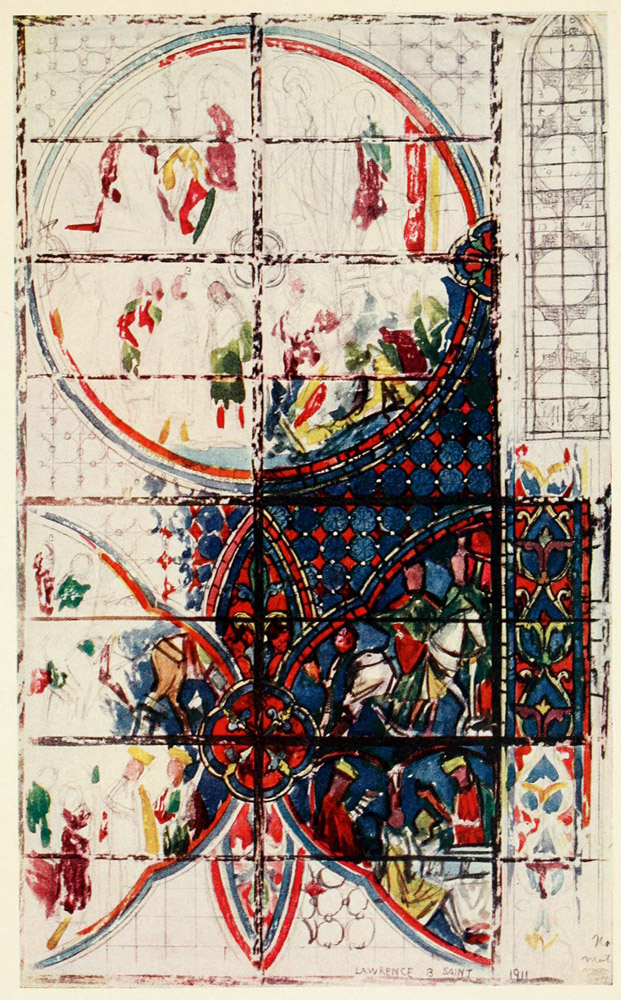 The work of the countries and period I have chosen is of course the most important of all. There is beauty, it is true, in much Renaissance work (only a prig could resist the gaiety and charm of the windows of St. Vincent at Rouen), but it is for the most part beauty achieved in spite of, and not through, the material. There is beautiful mediæval work in Germany and Italy, but the Germans, till the Renaissance, clung to a rather lifeless and archaic convention, and the Italians were hampered by their greater knowledge of painting. The art has found its noblest expression in the work of the great school which for nearly the whole of the Middle Ages was common to France and England.