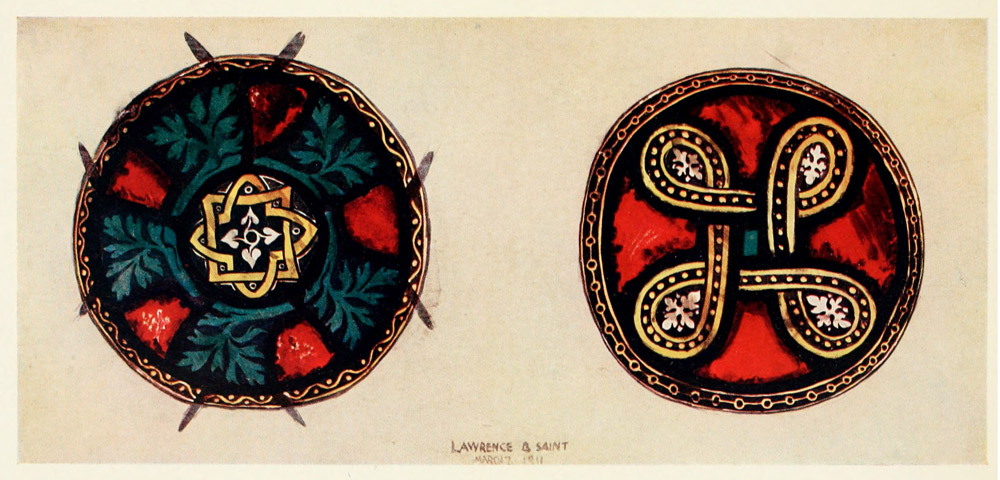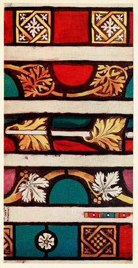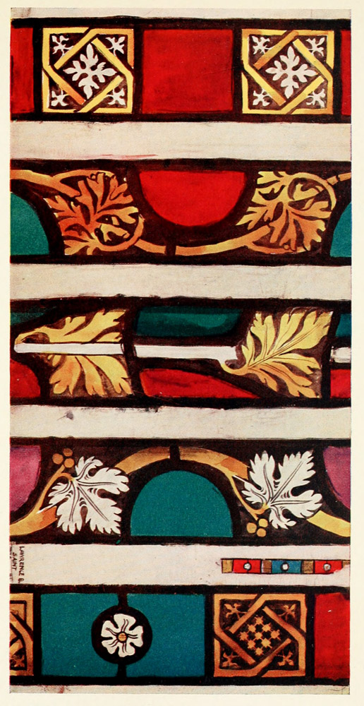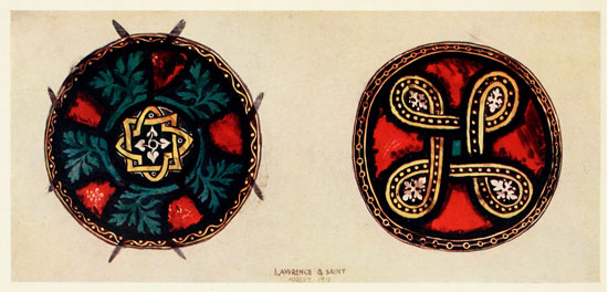 [3] By some writers it has been claimed that the whole idea of stained-glass work was derived from cloisonné enamel; but from the fact that the glazing of windows in glass and metal had been known long before, I think the course of events I have suggested above to have been more probable.