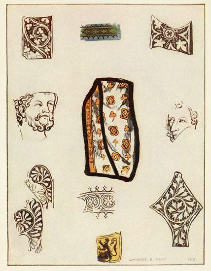 The publishers are fortunate in having been able to reproduce, for the illustrations, the very beautiful coloured drawings of Mr. Lawrence B. Saint, which are now in the Victoria and Albert Museum.
