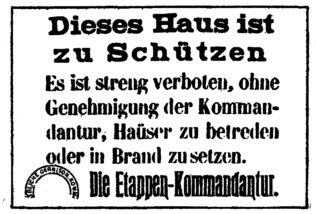 Es ist streng verboten, ohne Genehmigung der Kommandantur, Haüser zu betreden oder in Brand zu setzen.