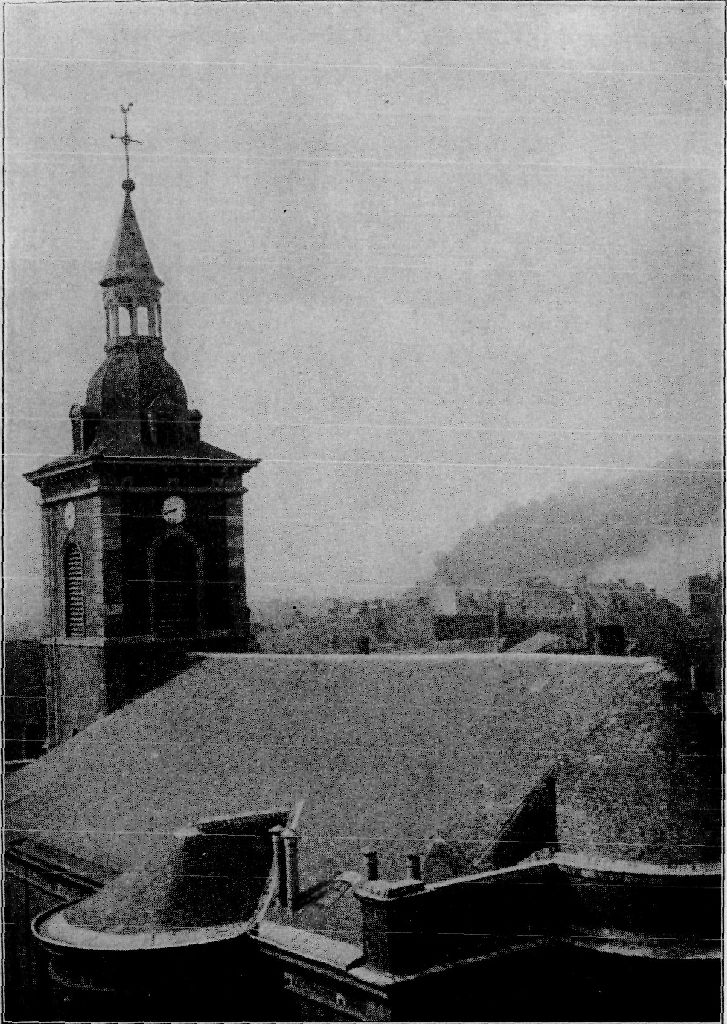 When we got there we found that the only way onto the roof was by a long perpendicular ladder leading to a trap door. We all scrambled up this—all but the Minister of Justice, who remained behind in the garret with his top hat.