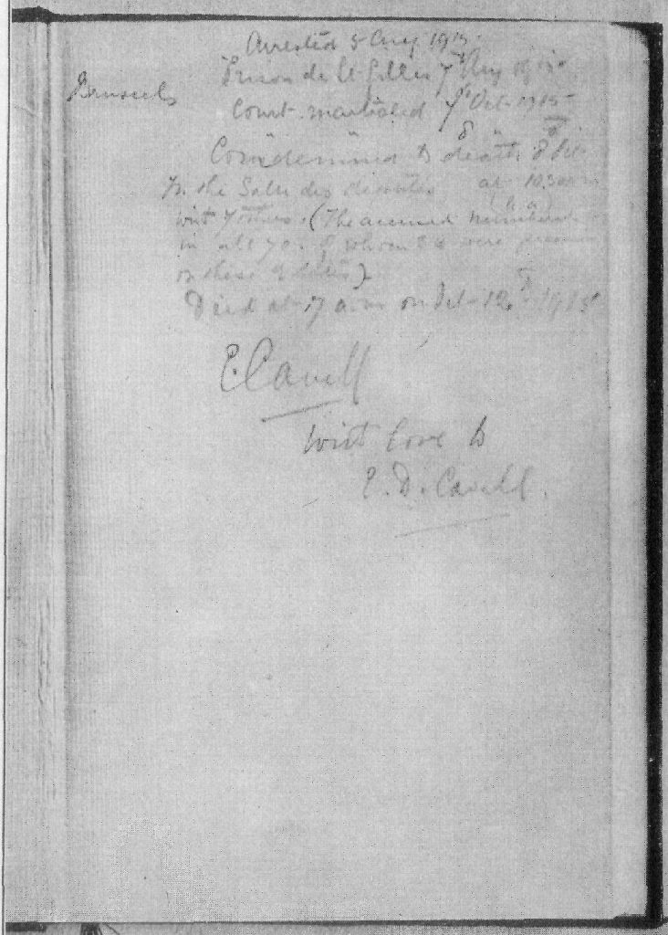 [12] At the time there was no intimation that Miss Cavell was guilty of espionage. It was only when public opinion had been aroused by her execution that the German Government began to refer to her as "the spy Cavell." According to the German statement of the case, there is no possible ground for calling her a spy.