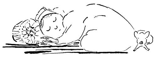 For a whole day and a night the rats worked very hard, trying to turn the man out. They rattled the pans in the kitchen at night. They pulled the stuffing out of his chair. They ate holes in his new, green hat. They stopped the clock. They pulled the curtains down upon the floor. But the man sent to London Town and got three wagon-loads of cats and the rats were all driven back to the river. Tommy Squeak came to Punk, Pink and Ponk on the second day and said,