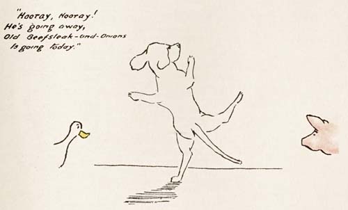 So Peter Punk went off with his tail dragging on the ground. He hung about the farm and was very sad and wondered what he could do to drive Beefsteak-and-Onions out of the house.