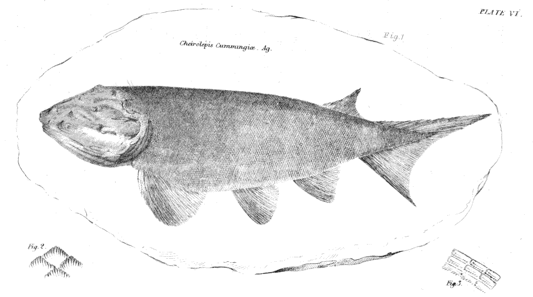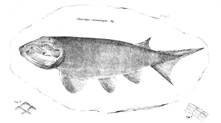 The Elfin-fish of Gawin Douglas.—The Fish of the Old Red Sandstone scarcely less curious.—Place which they occupied indicated in the present Creation by a mere Gap.—Fish divided into two great Series, the Osseous and Cartilaginous.—Their distinctive Peculiarities.—Geological Illustration of Dr. Johnson's shrewd Objection to the Theory of Soame Jenyns.—Proofs of the intermediate Character of the Ichthyolites of the Old lied Sandstone.—Appearances which first led the Writer to deem it intermediate.—Confirmation by Agassiz.—The Osteolepis.—Order to which, this Ichthyolite belonged.—Description.—Dipterus.—Diplopierus.—Cheirolepis.—Glyptolepis,