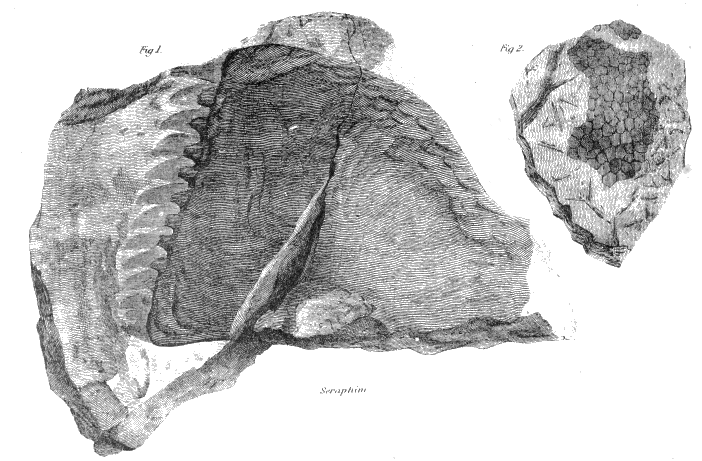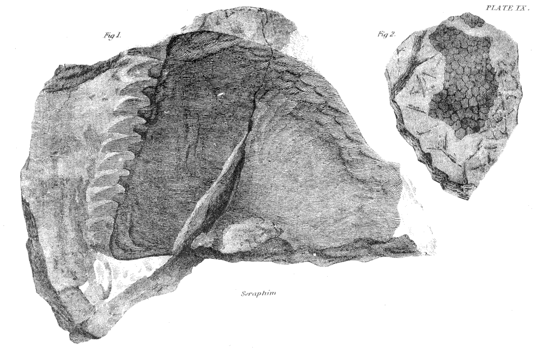 [A] As these paddle-shaped arms have not been introduced by Agassiz into his restoration of the Coccosteus, their existence, at least as arms, must still be regarded as problematical. There can be no doubt, however, that they existed as plates of very peculiar form, and greatly resembling paddles, and that they served in the economy of the animal some still unaccounted for purpose.