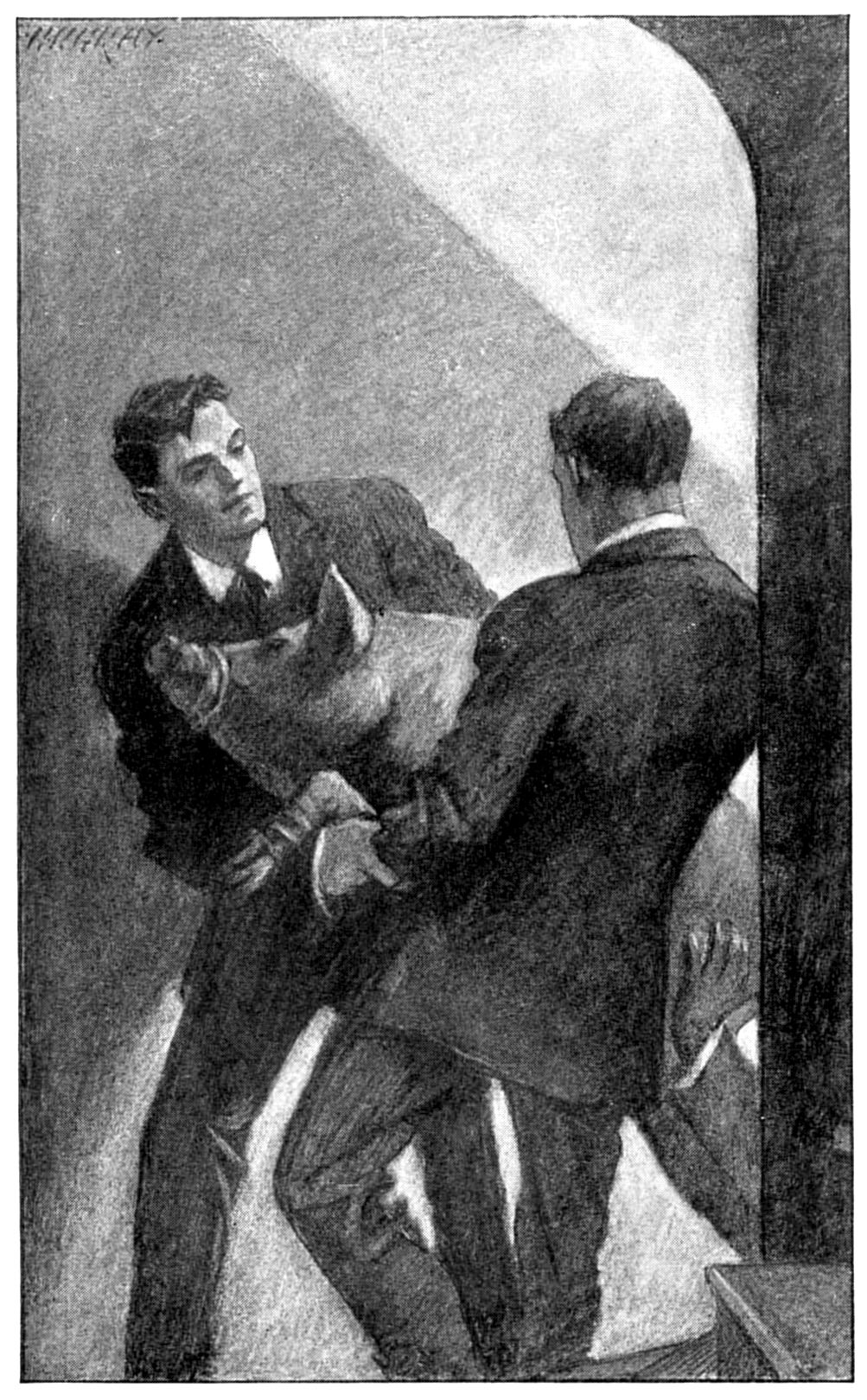 “Don’t fellows,” he pleaded. “I haven’t got time to celebrate right now—important business. I must hurry before she—before”——