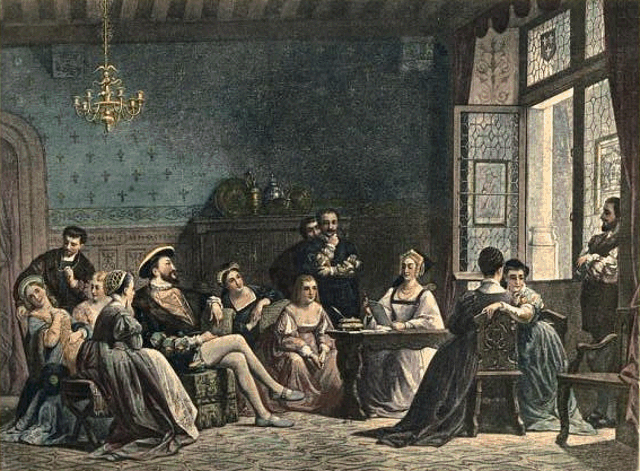 At this time there were three distinct sets or social castes at the court of France: the pious and virtuous band about the good Queen Claude; the lettered and elegant belles in the coterie of Marguerite d'Angoulême, sister of Francis I.; and the wanton and libertine young maids who formed a galaxy of youth and beauty about Louise of Savoy, and were by her used to fascinate her son and thus distract him from affairs of state.