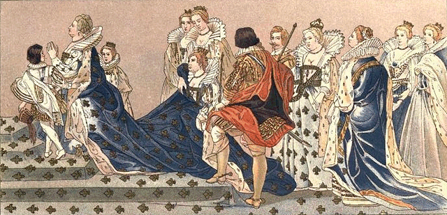 While France groaned under the burdens of seemingly interminable wars and exorbitant taxes, her king revelled in excessive luxury; the aim of his favorite mistress seemed to be to acquire wealth and spend it lavishly for her own pleasure. Voluptuousness, cruelty, and extravagance were the keynotes of the time. All means were used to procure revenues, the king easing any pangs of conscience by burning a few heretics whose estates were then quickly confiscated.