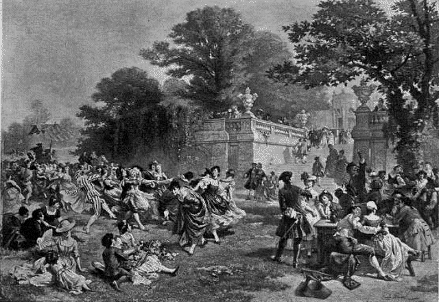 Under her influence the character of the court changed entirely; retaining only a semblance of its former decency, it became utterly corrupt. It possessed external elegance and distingué manners, but below this veneer lay intrigue, debauchery, and gross immorality. In order to meet the vast expenditures of the king and the queen-mother, the taxes were enormously increased; the people, weighed down by the unjust assessment and by want, began to clamor and protest. Undismayed by famine, poverty, and epidemic, Louise continued her depredations on the public treasury, encouraging the king in his squanderings; and both mother and son, in order to procure money, begged, borrowed, plundered.