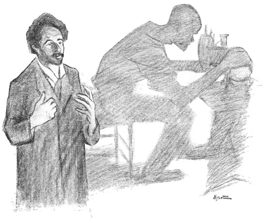 At this point, Levitzky entered the café. With him was the new arrival, the German Anarchist. To him Levitzky was talking with great animation. His words rolled over one another with enthusiasm.