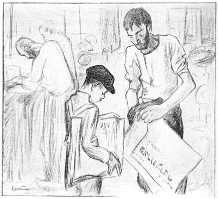 Blanofsky shook his head, and was about to speak of Tolstoy, whom he regarded as the great interpreter of genuine anarchy, when he was interrupted by the approach of a young man and a young woman who had just entered the café. Sabina, as she was familiarly known to the faithful, dark and slender, with very large, emotional eyes and a mobile mouth, had just come from her lecture to a crowd of workingmen, to whom she had spoken eloquently of their right to lead a life with greater light and beauty in it. The emotions expressed by her eloquence, and stirred by it, still lay in her deep eyes as she entered the café. Her companion, who had walked with her from the lecture, was a young poet, whose words followed one another with turbulent energy. His head was set uncommonly close to his compact, stout shoulders, seeming to have a firmer rest than usual on the trunk, and thus better to support the strain of his thick-coming fancies. His habitual attitude was to hold his 302 closed fist even with his shoulder, and punctuate with it the transitions of his thought. Even in winter the perspiration rolled down his face as he spoke, for thought with him was intense to the point of pain. He was the perfect type of the intellectual debauchee of the Russian-Jewish colony. He drank nothing but tea and coffee, but within him burned his ideas. He made his living by writing an occasional poem or article for a Yiddish paper, and when he had gathered together a few dollars he repaired again to the cafés, seeking companions to whom he could confide his exuberant thoughts, which were always expressed in poetic images. He slept whenever and wherever he was tired, but he slept seldom, and unwillingly. Unrest was his quest and unhappiness his dearest consolation. The type of his mind was as Russian as his name, which was Levitzky. The girl looked and listened to him, fascinated. They sat down at the table with the others, and while the waiter was bringing their tea and lemon, Levitzky continued his discourse: