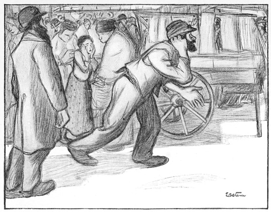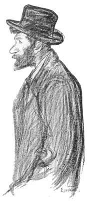 His companions were younger and more heated and violent in speech, tho their attenuated bodies and thoughtful and sensitive faces did not suggest reliance on physical force. On 299 the Bowery the Irish tough fights after a word, but an all day dispute between two Jews on Canal or Hester Street is unaccompanied by the clenching of a fist. A dark, thin young man, whose closely shaven face seemed somehow to fit his spirit, given over entirely to the "movement," sat at Blanofsky's right hand. At almost any hour of the day or night Hermann Samarovitch could be found at the Anarchist headquarters on Essex Street, poring over the books of the propaganda and engaging in talk with other bright spirits of the "movement." Now, as he talked or listened in the café on Grand Street, his pale, smooth face seemed dead to all the ordinary interests of youth. The spirit of life was represented in him only by the passion for the cause, which burned in his black eyes. He had no other function than to worship at the shrine. How he lived, therefore, was a mystery.