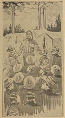 Entering the post-office for my daily mail, I noticed in the lobby, hanging on the wall, a beautiful, attractive and highly colored landscape and manhood therein displayed in its perfection, gaudily dressed in spotless uniforms; some on horseback, some afoot, with a carriage as erect and healthful demeanor that the artist could undoubtedly produce; he was at his best, setting forth a life of ease and comfort that would appeal to the youngster, patriot and careless individual, that therein is a life worth living for. Even the social features have not been omitted where men and officers stand in good comradeship. Peace and repose, and a full dinner pail are the environment of the whole representation.