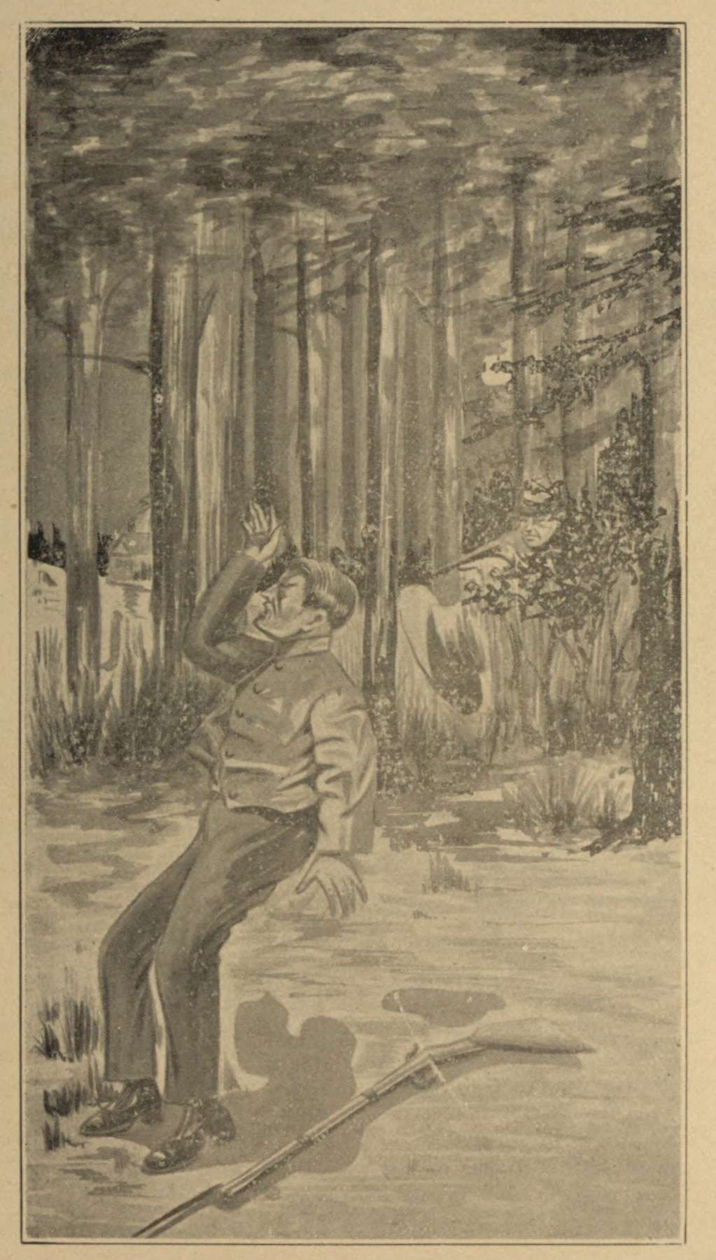 The country from Monterey to Cheat Mountain was not inhabited, with the exception of a tavern on top of the Allegheny, where travelers might find refreshments for man and beast. The enemy often harassed us with scouting parties, and attacking isolated posts. To check these maneuvres, we did the same; so one evening, Lieutenant Dawson of the Twelfth Georgia Regiment, Captain Willis Hawkins' Company from Sumter County, and which regiment formed a contingent part of our forces at Green Brier River, came to me saying, "Hermann, I want you tonight." He was a fearless scout, a kind of warfare that suited his taste, and he always called on me on such occasions. And after my last picket experience, I was only too willing to go with him, as it[47] relieved me from army duty the day following, and I preferred that kind of excitement to standing guard duty.
