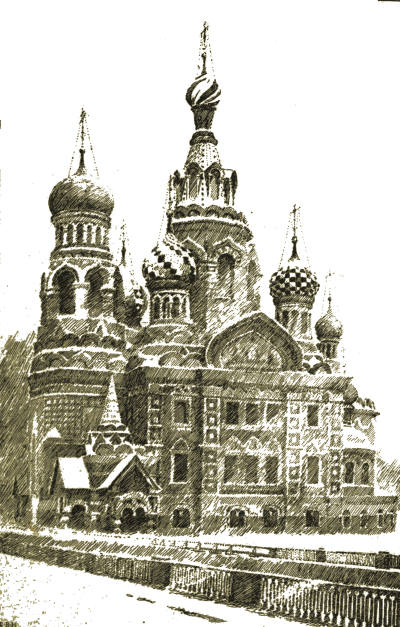 [142] So that it is rather curious that this building should be on the whole the most perfect reproduction of an Italian church in St. Petersburg. There is nothing Russian about it; just an ordinary cruciform domed Renaissance building, 255 feet long.