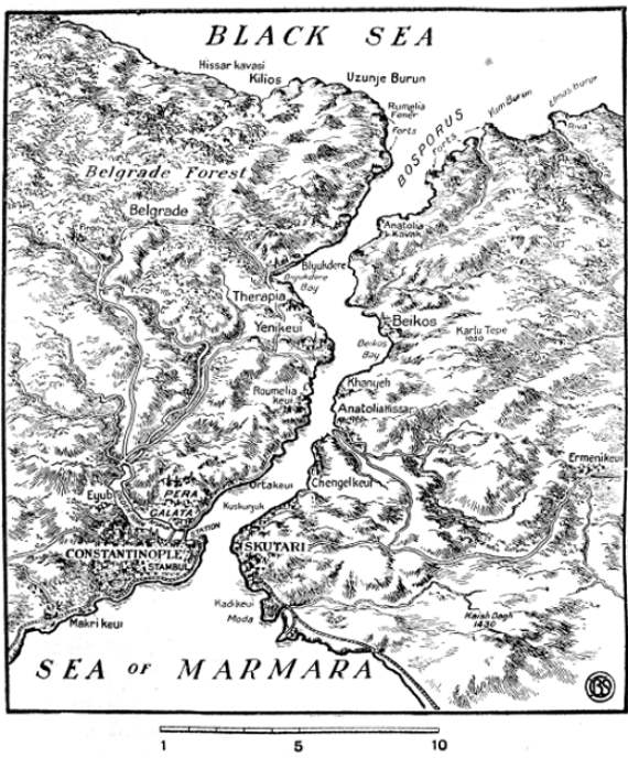 (2) Kilid Bahr plateau, which rises, a natural fortification artificially fortified, to a height of 700 feet to cover the forts of the Narrows from an attack from the Aegean.
