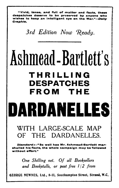 The Services in the Dardanelles are fortunate in having a scholarly General to narrate their stirring deeds, for many of our commanders, from Marlborough to Clyde, have felt more difficulty in writing a description of a victory than they had experienced in winning it.