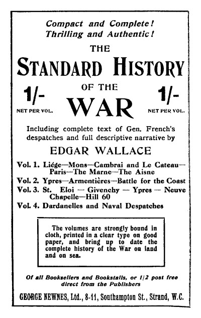 Heroes All—Gallant Deeds of the War By EDGAR WALLACE, A stirring collection of stories of heroic and thrilling deeds on land, sea, and in the air. 256 pages. Splendidly illustrated. Cloth. Large crown. 3/6