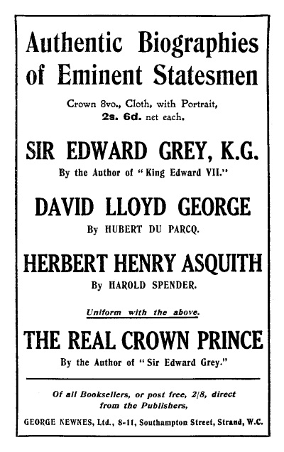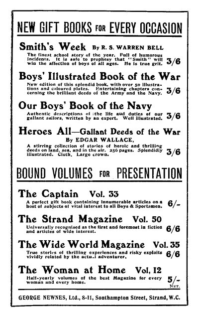 GEORGE NEWNES, Ltd., 8-11, SOUTHAMPTON ST., STRAND, LONDON, W.C.