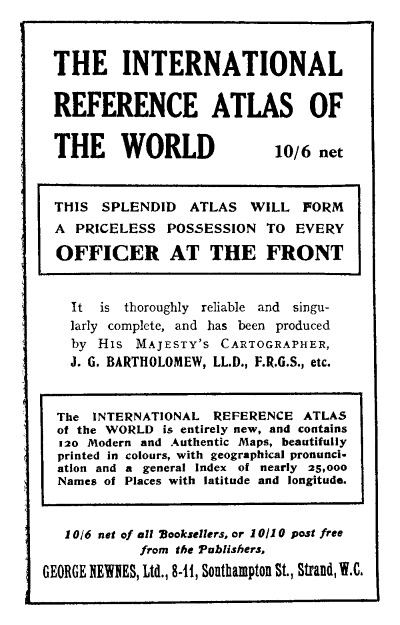 THIS SPLENDID ATLAS WILL FORM A PRICELESS POSSESSION TO EVERY OFFICER AT THE FRONT
