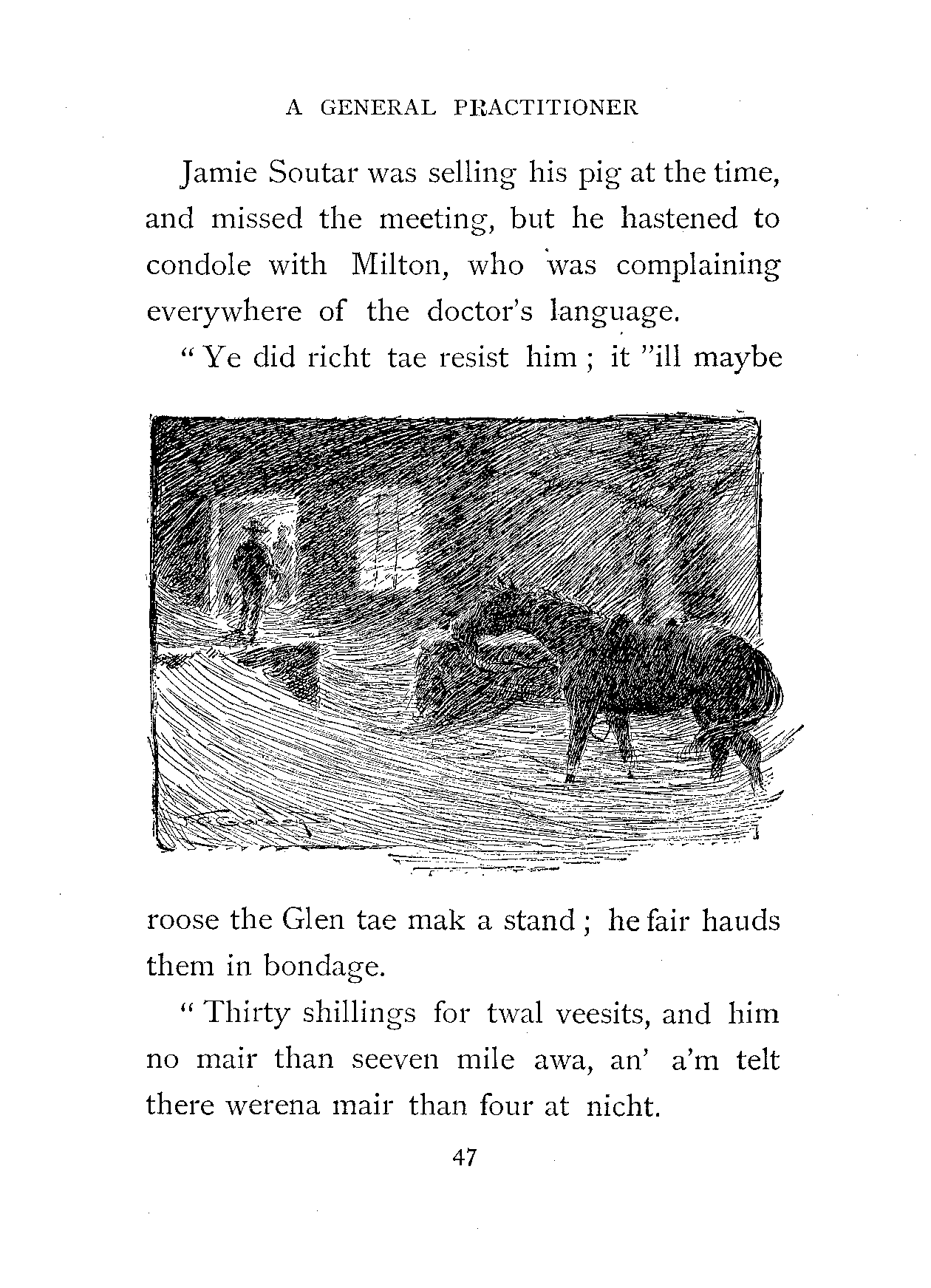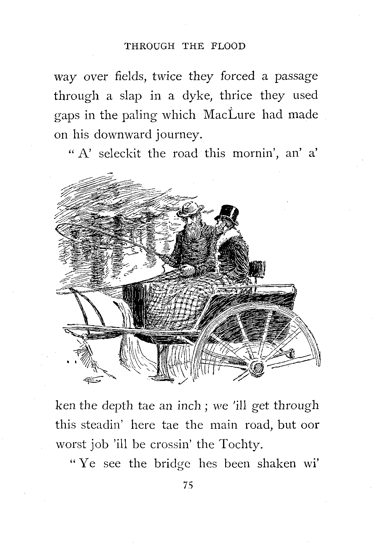 “It took them a gude fower oors tae get across, an' it wes coorse wark; they likit him weel doon that wy, an', Jamie, man”—here Drumsheugh's voice changed its note, and his public manner disappeared—“what div ye think o' this? every man o' them has on his blacks.”