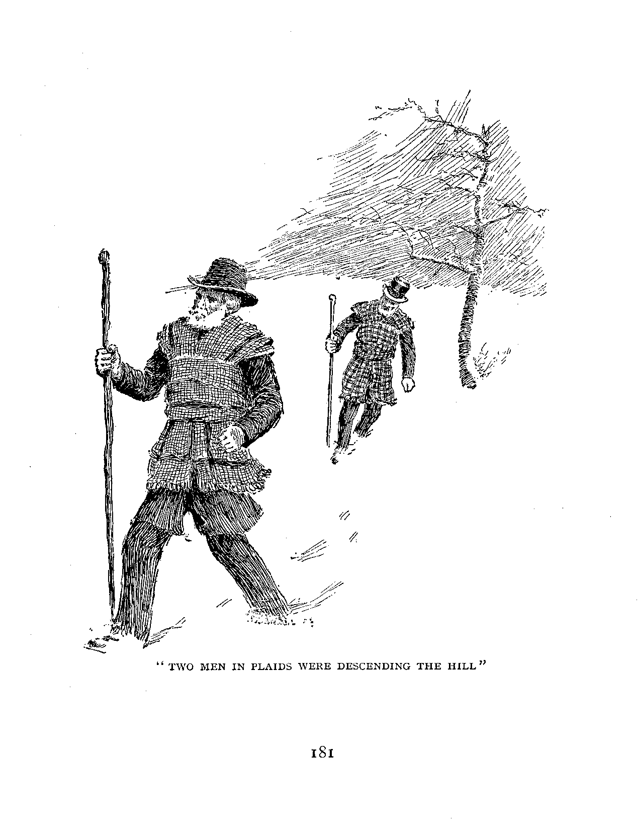 Two men in plaids were descending the hill behind the doctor's cottage, taking three feet at a stride, and carrying long staffs in their hands.