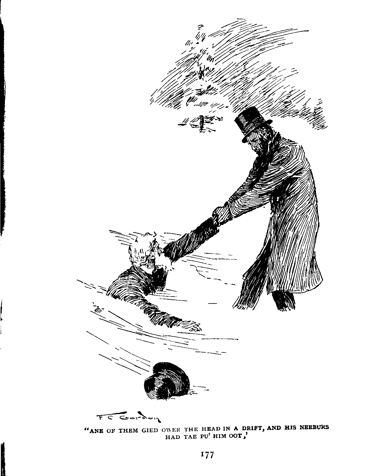 "See, Jamie," said Drumsheugh, as he went to the house, "gin there be ony antern body in sicht afore we begin; we maun mak allooances the day wi' twa feet o' sna on the grund, tae say naethin' o' drifts."