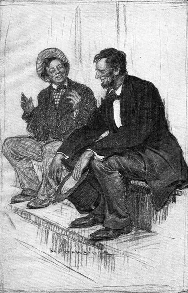 “Didn’t I know it? Think bein’ president would change him—not a mite. Well, he had a right smart lot of people to see, but soon as he was through we went out on the back stoop and set down and talked and talked. He asked me about pretty nigh everybody in Springfield. I just let loose and told him about the weddin’s and births and the funerals and the buildin’, and I guess there wan’t a yarn I’d heard in the three years and a half he’d been away that I didn’t spin for him. Laugh—you ought to a heard him laugh—just did my heart good, for I could see what they’d been doin’ to him. Always was a thin man, but, Lordy, he was thinner’n ever now, and his face was kind a drawn and gray—enough to make you cry.
