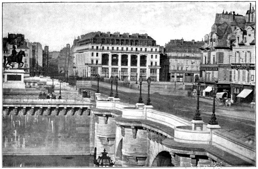 Since the days when all of the city of Paris, save a few mills, fortresses, and donjon-towers, was to be found on the Île de la Cité, the western end of that island has been the quarter of the gold and silver smiths. Here, in the olden times, when this part of the island was laid out in gardens and paths, the sellers of ornaments and metal vessels arranged their wares on the ground or in rude booths; later when peaked-roofed, latticed-faced buildings filled the space, these same venders opened their workshops in them; later still, when good King Henry IV. filled up this western end, built the Pont Neuf and put up the two fine façades of red brick and stone—mates for the arcades of the Place Royale—the same class continued here their trade. Even to-day, he who knows Paris thoroughly seeks the neighborhood of the Quai de l’Horloge and the Quai des Orfèvres for fine silverware and jewels.