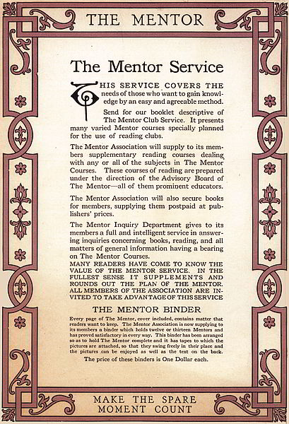 The Mentor Association will also secure books for members, supplying them postpaid at publishers' prices.