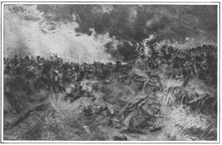 The Battle of Waterloo, June 18, 1815, was the final blow to Napoleon’s power. On that day hung the fate of Europe. Napoleon faced the allied forces of Prussia, England, Germany, and the Dutch, and had assembled an army of 70,000 to meet them. The allied forces were under command of the Duke of Wellington. They were bound together by one stern purpose,—to annihilate once for all the man whom they called the scourge of Europe. A heavy rainstorm prevented the emperor from carrying out his original plan of attack, which was to meet the enemy in two sections. The night of June 17 was stormy. A heavy rainstorm made the roads so heavy that the emperor could not move his cannon into the place desired until a short time before the enemy’s forces joined. Then, too, General Grouchy had been instructed to intercept the Prussian forces under Blücher, and hold them back while Napoleon fought his fight with Wellington. If he could not do that, he was at least to follow Blücher to Waterloo. The arrival, therefore, of Blücher and his forces in good fighting trim put the French into such confusion that a crushing defeat was inevitable. In the rout men had to save themselves as best they could.