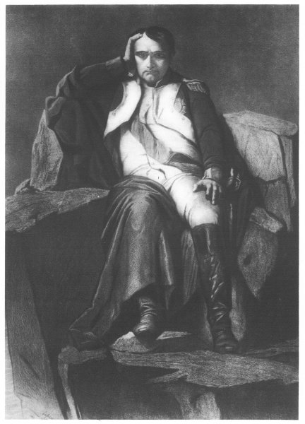 NAPOLEON AT ST. HELENA, from the painting by Paul Belaroche, is the subject of one of the intaglio-gravure pictures illustrating “Napoleon Bonaparte.”