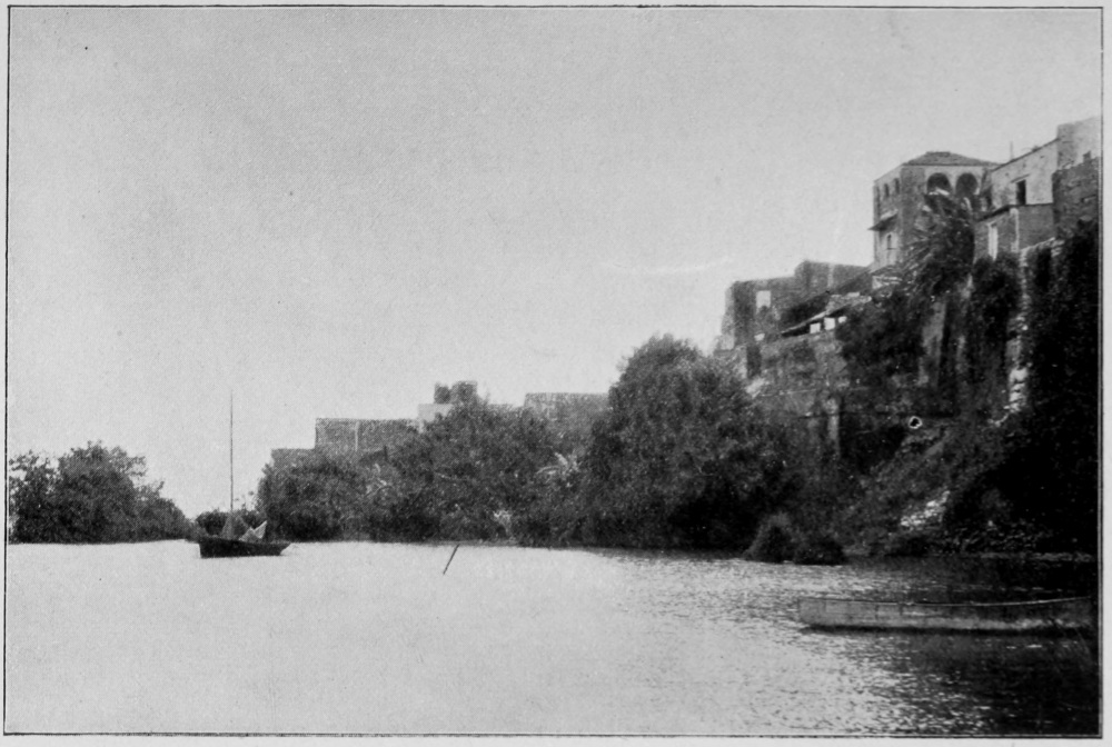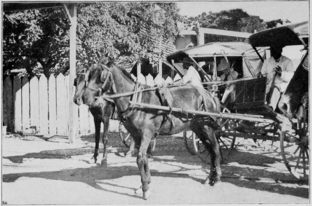 The road on through the village is too beautiful to leave; we must go farther, deeper down among this strangely silent, mysterious people; and we drive on to where the palms meet over our heads, and we get glimpses of the blue and green Gulf beyond, and some one tells us—or have we dreamed it?—that, farther on, we shall come to the Big White House, and we wonder if we are really ourselves, or some one very unreal out of a book.