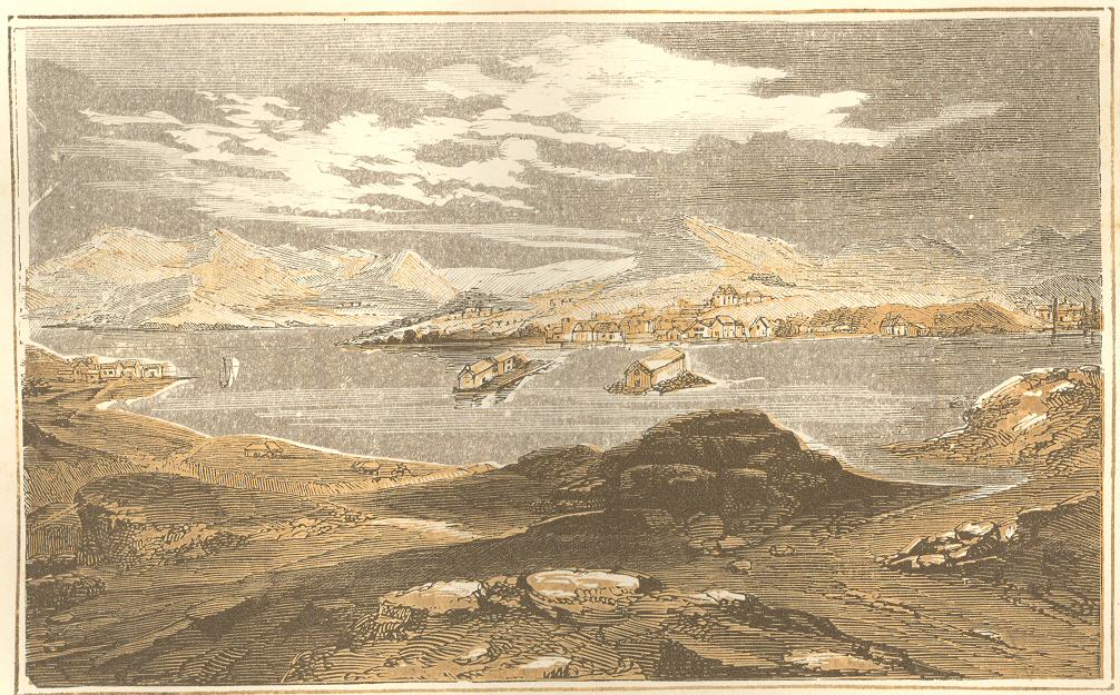 [27] This town, the capital of Iceland, and the seat of government, is built on an arm of the sea called the Faxefiord, in the south-west part of the island. The resident population does not exceed 500, but this is greatly increased during the annual fairs. It consists mainly of two streets at right angles to each other. It contains a large church built of stone, roofed with tiles; an observatory; the residences of the governor and the bishop, and the prison, which is perhaps the most conspicuous building in the town.—Ed.