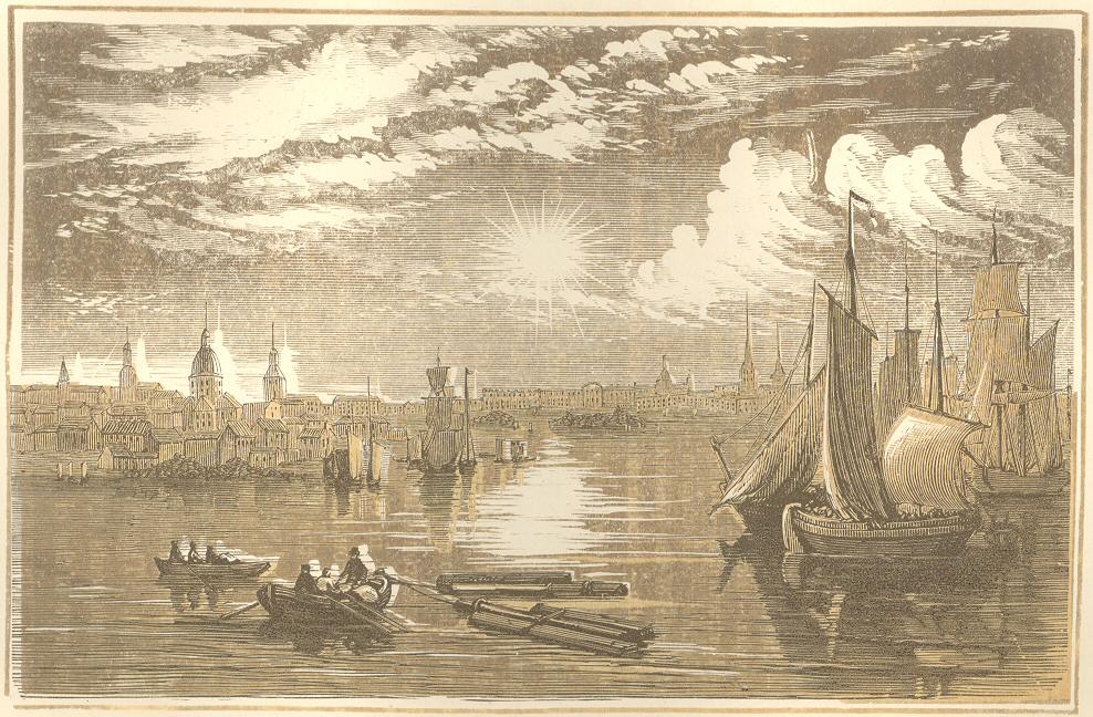 [11] The fire broke out on 4th May 1842, and raged with the utmost fury for three days. Whole streets were destroyed, and at least 2000 houses burned to the ground. Nearly half a million of money was raised in foreign countries to assist in rebuilding the city, of which about a tenth was contributed by Britain. Such awful fires, fearful though they are at the time, seem absolutely necessary to great towns, as they cause needful improvements to be made, which the indolence or selfishness of the inhabitants would otherwise prevent. There is not a great city that has not at one time or another suffered severely from fire, and has risen out of the ruins greater than before.—Ed.