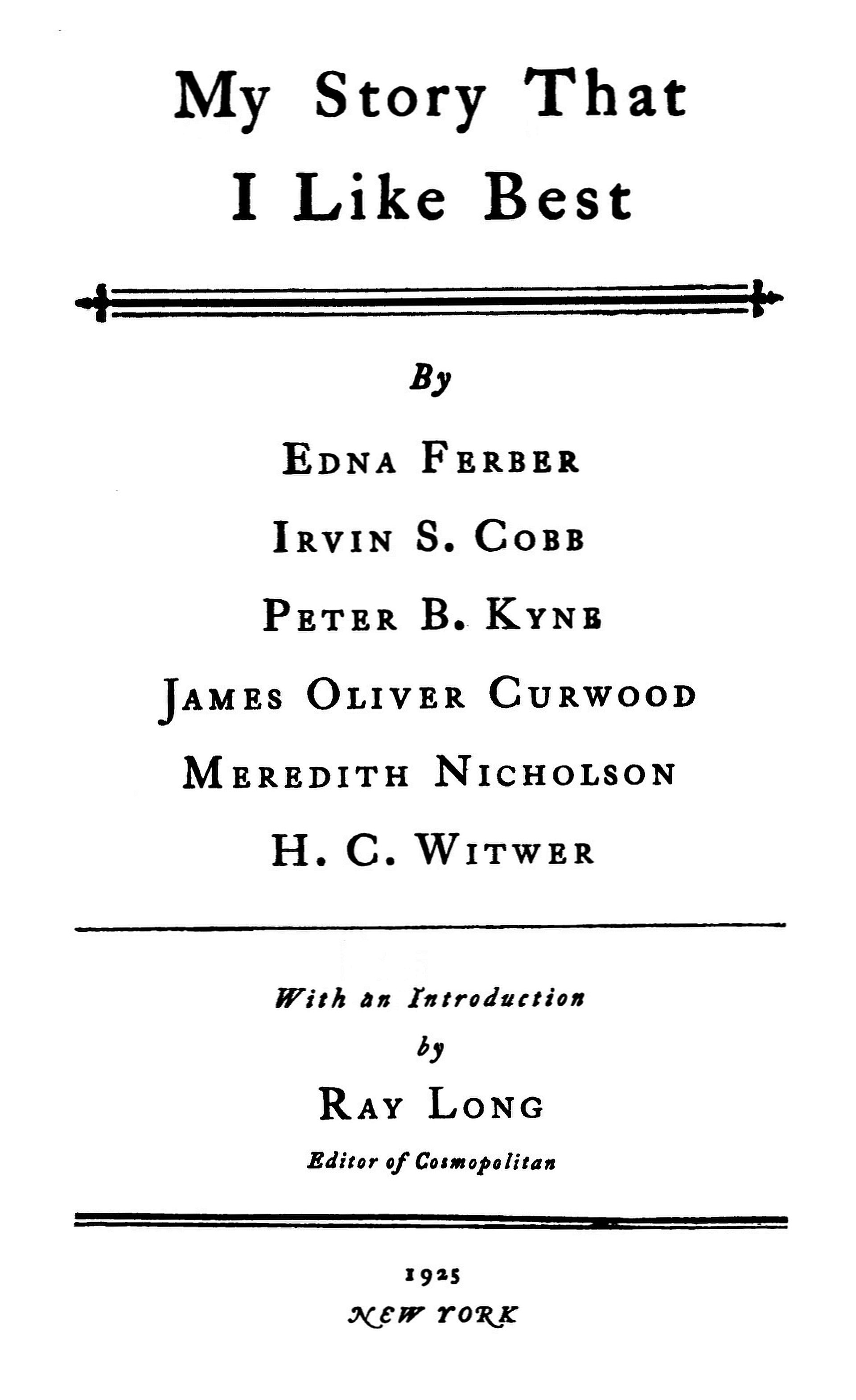 In this discussion there will be no effort to say that these stories excel in any year. What they represent is the selection by each of six authors of his own story which he likes best of all he has written. And inasmuch as each of these writers has been years at his trade, this forms a collection not only interesting to you and myself, but informative and valuable to the student of writing.