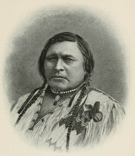 The Sioux were one of the largest Indian nations upon the American continent. So far as is known, their original home was upon the Atlantic Coast in North Carolina, but by the time Europeans began to settle in that section they had drifted into the Western country. Their first contact with the white race occurred in the upper Mississippi region. These white people were the French explorers who had penetrated into almost every part of the interior long before the English had made any serious attempt at the exploration of 18 the wilderness west of the Allegheny Mountains. The friendly relations between the French and the Sioux continued for many years, but when the French were finally supplanted by the English in most localities, the Sioux made an alliance with the latter which was maintained during the Revolutionary War, and continued until after the War of 1812. Subsequent to the year 1812, the Sioux gradually drifted still farther westward, and not many years later their principal home was upon the upper Missouri River. The recognized southern boundary of their country was the North Platte River, but on account of their friendly relations with the Cheyennes and Arapahoes, the Sioux often wandered along the base of the mountains as far as the Arkansas River, and, being at enmity with the Utes, they frequently joined the Cheyennes and Arapahoes in raids upon their common enemy.