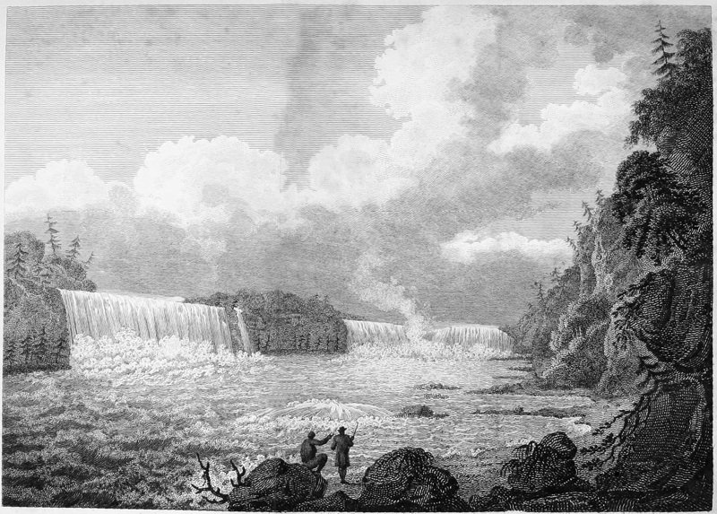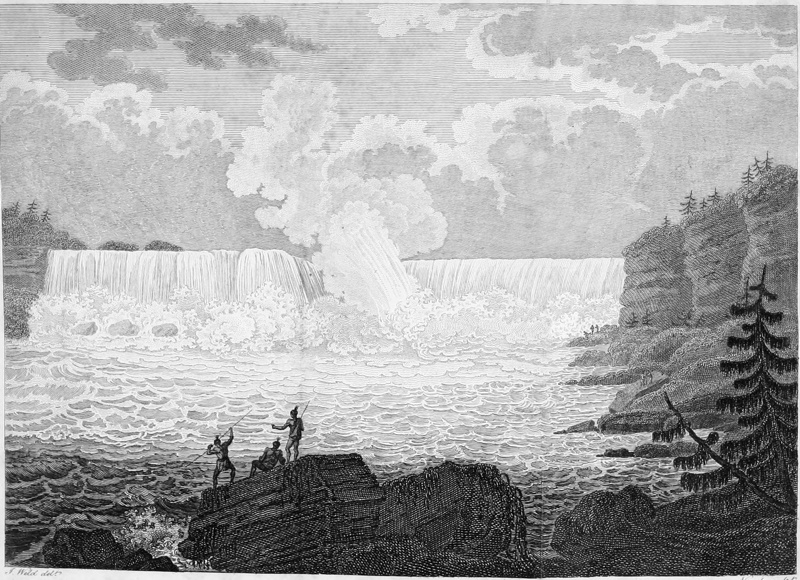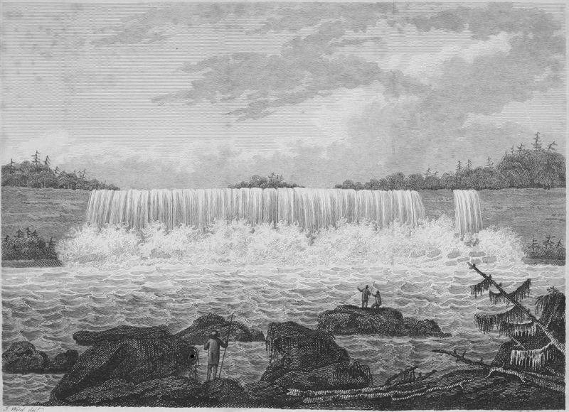 I should have mentioned to you before, that both the Indians and the white Americans pronounce the word Niagara differently from what we do. The former lay the accent on the second syllable, and pronounce the word full and broad as if written Nee-awg-ara. The Americans likewise lay the accent on the second syllable; but pronounce it short, and give the same sound to the letters I and A as 318we do. Niagara, in the language of the neighbouring Indians, signifies a mighty rushing or fall of water.