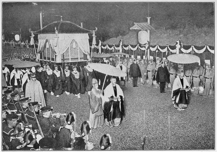 My recent residence in Japan, when we lived in the Embassy in Tokyo, has served only to enhance the Spell which that country has cast over me since I first crossed the Pacific, sixteen years ago. What beautiful summer evenings were those on the Southern Seas, when the moon was full! As we sat in the bow of the Doric and sang to the music of the eukalalie, [1] we gazed into the water glistening with phosphorescence. The mornings found us there again, listening to the swish of the waves as the boat slowly rose and sank on the long Pacific swell. We watched the flying-fish, and the schools of leaping porpoise, and the tropical birds with their long white tail-feathers sailing in the blue sky.